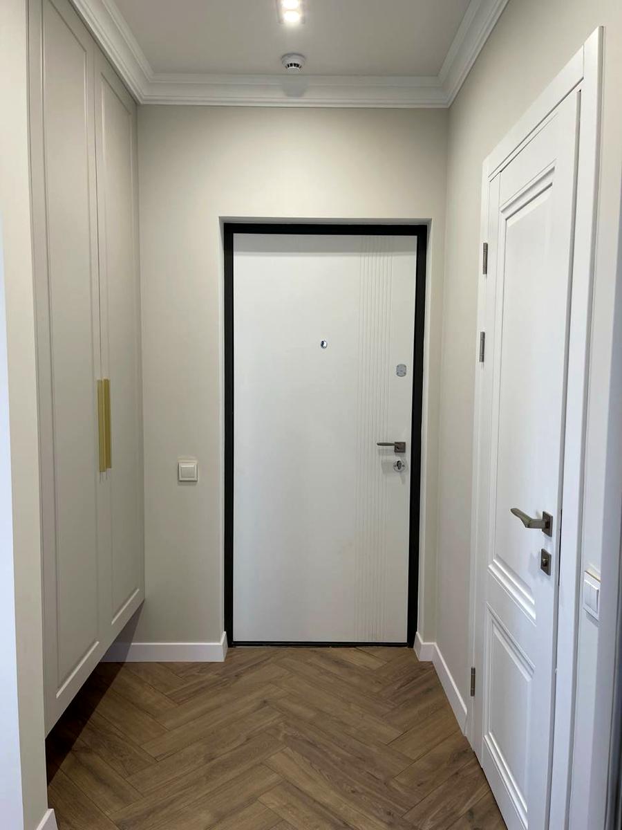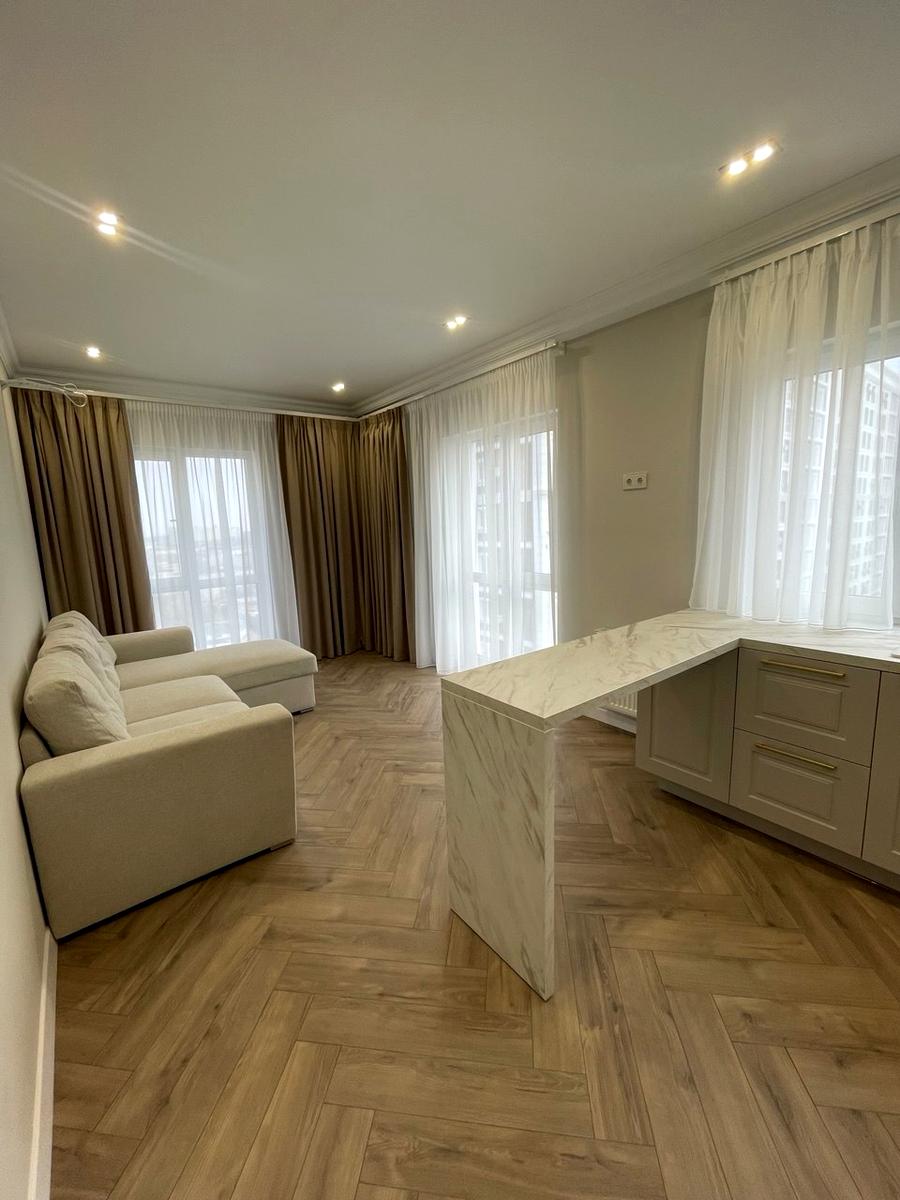 Квартира, в якій поєднуються естетика та функціональність, розташована на 16-му поверсі монолітно-каркасного будинку 2018–2020 років забудови у ЖК Нова Англія по вул. Максимовича Михайла, 24г. Простір 41 м² розкривається через кухню-вітальню 19,5 м² та продумане зонування з трьома вікнами, що наповнює квартиру світлом і створює відчуття простору. Квартира з дизайнерським ремонтом у неокласичному стилі, укомплектована вбудованими меблями та технікою Whirlpool, що дозволяє заїхати одразу без додаткових витрат. Використані якісні матеріали, встановлені теплі підлоги, бойлер швидкого нагріву, сучасна сантехніка та система освітлення формують високий рівень енергоефективності та комфорту. Передбачені виводи під кондиціонери, стабільний інтернет і сучасні інженерні рішення забезпечують необхідний рівень автономності.