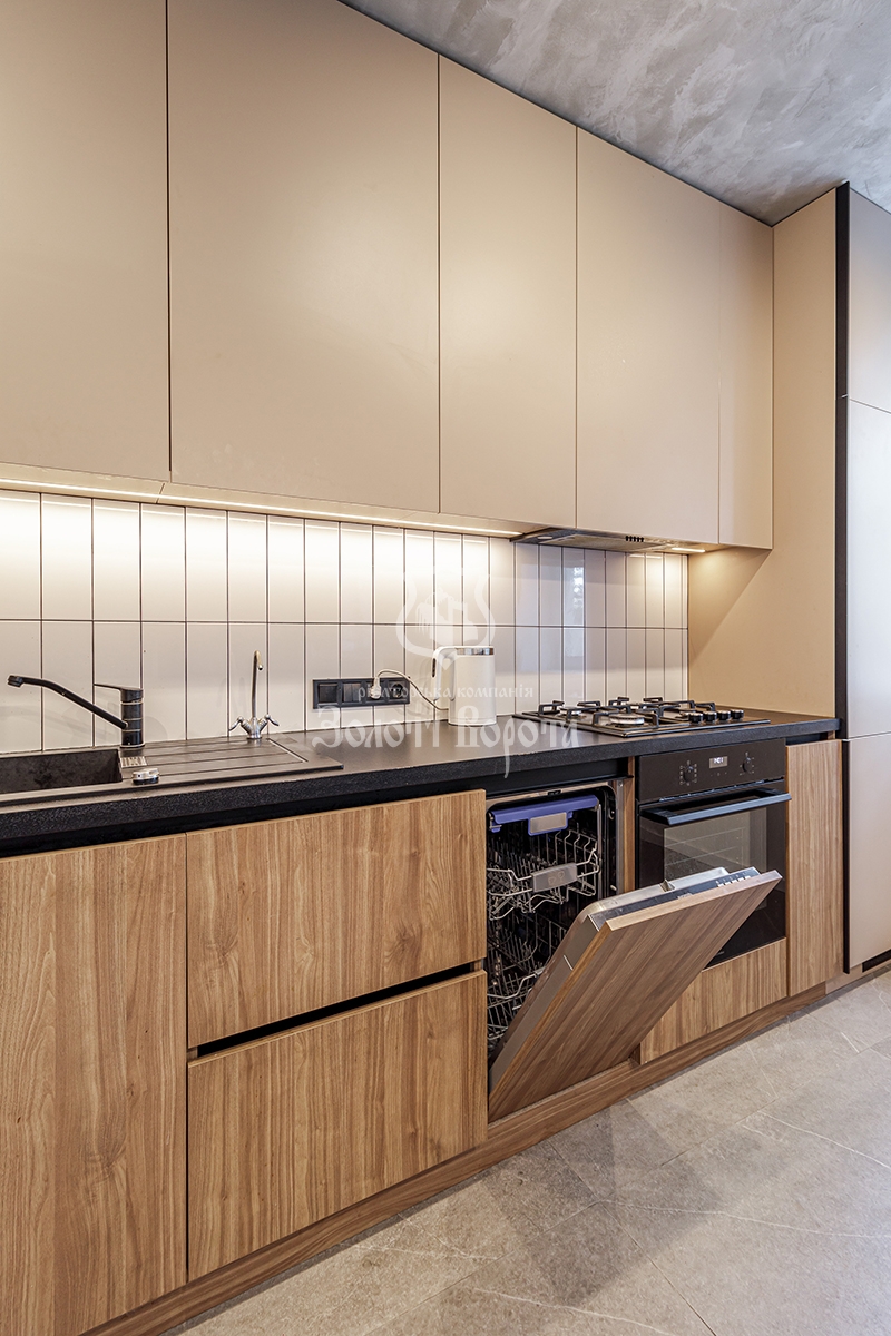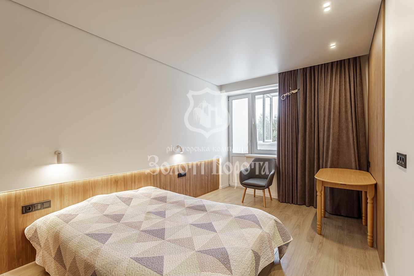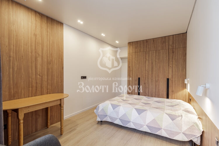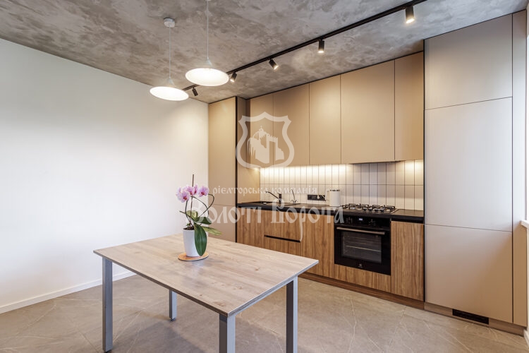 На підлозі — стяжка зі звукоізоляційним полотном, утеплення. На кухні та в коридорі на підлозі встелена плитка з підігрівом, у спальних кімнатах — ламінат. Дуже гарна оселя, над оформленням якої працював справжній експерт інтер’єрного дизайну. Поєднання теплих та світлих кольорів створює ефект збільшеного простору та затишку. Стіни та стелі гармонійно поєднуються..