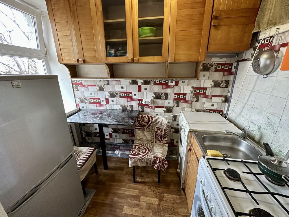 Житло у задовільному стані: на підлозі — дерев’яне покриття, стіни оздоблені шпалерами. Планування зручне, з відкритим балконом, що додає світла та простору.