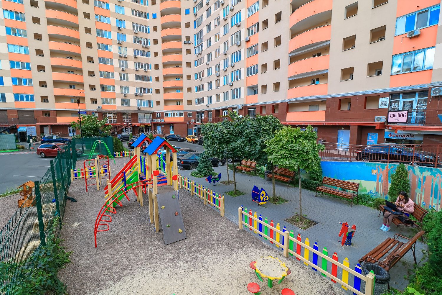 Житловий комплекс розташований у престижному Голосіївському районі та пропонує мешканцям повну автономність і комфорт. На першому поверсі будинку функціонує розвинений інфраструктурний хаб: аптеки, маркет та сервісні центри. Закрита територія зі шлагбаумом та дворівневим доступом забезпечує безпеку, а наявність власного дитячого садка, сучасних дитячих та спортивних майданчиків прямо у дворі робить цей об’єкт ідеальним для родинного проживання. Під’їзд обладнаний швидкісними вантажним та пасажирським ліфтами для комфортного вертикального сполучення.