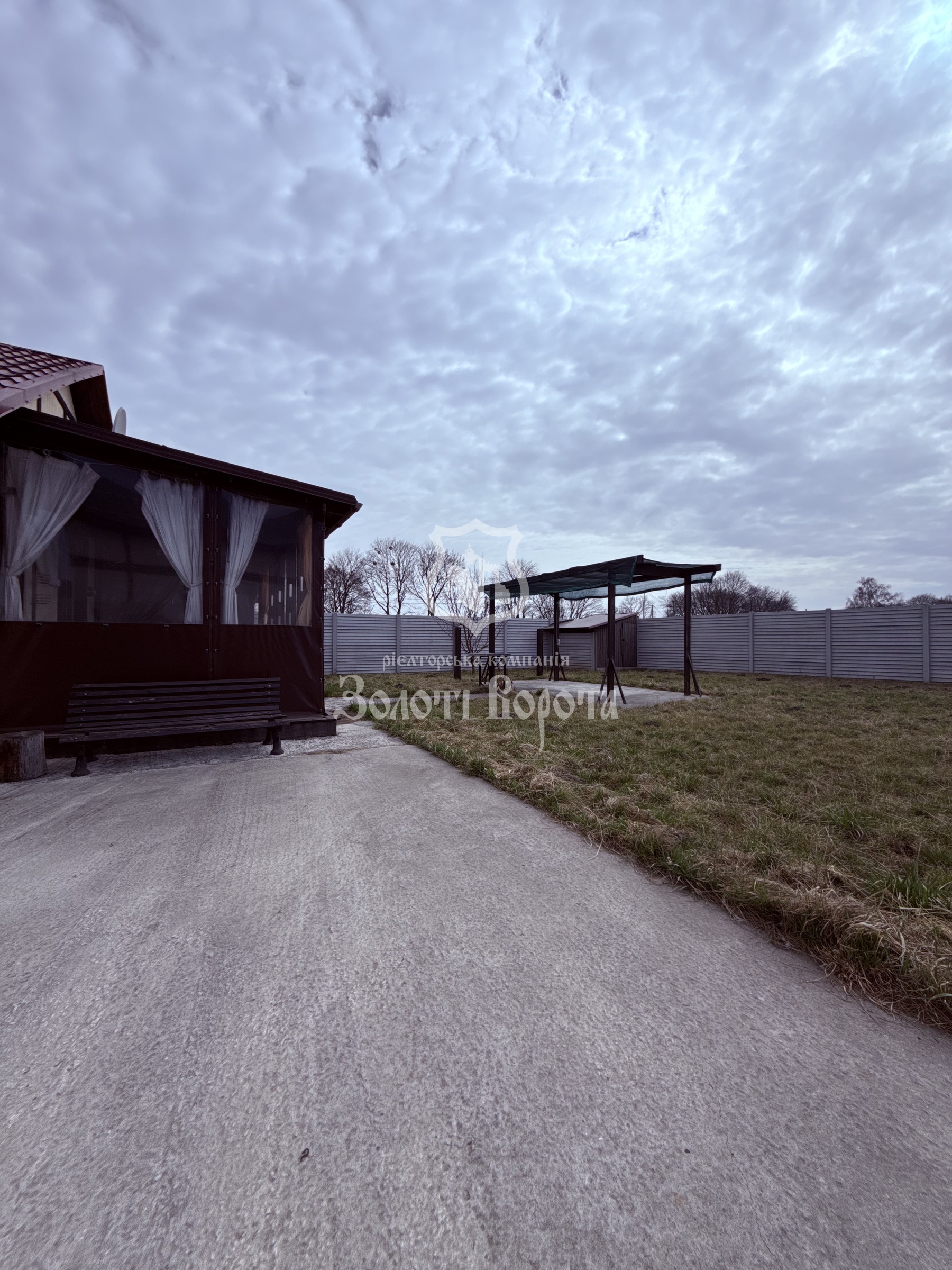 Територія огороджена якісним сучасним парканом, прикрашена зеленим газоном та доглянутими туями, а для зберігання інструментів передбачена окрема майстерня.