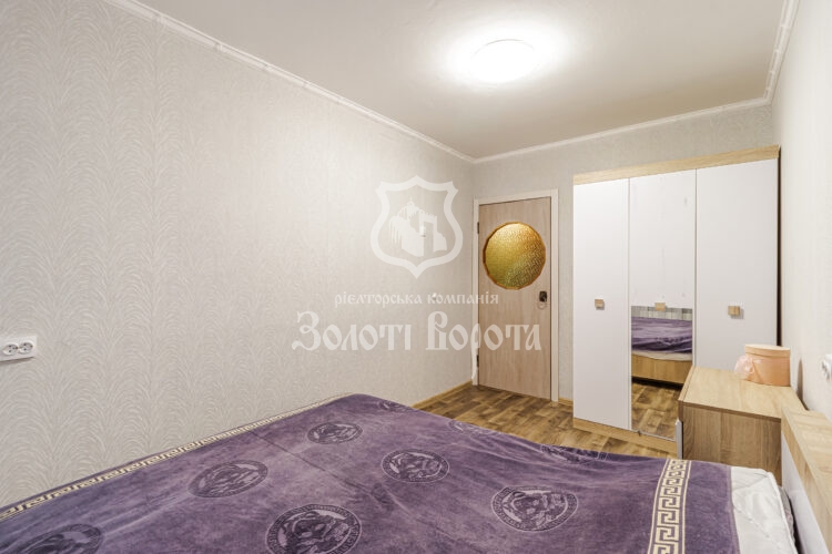 Квартира має практичне роздільне планування: у двох окремих кімнатах вже виконано якісний сучасний ремонт та повністю замінено електропроводку. Для нових власників облаштовано містку гардеробну кімнату та просторий засклений балкон, який було додатково утеплено.