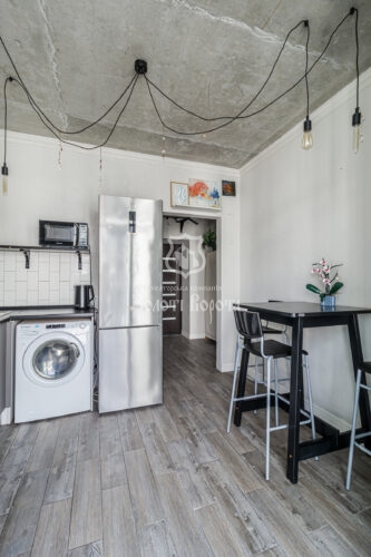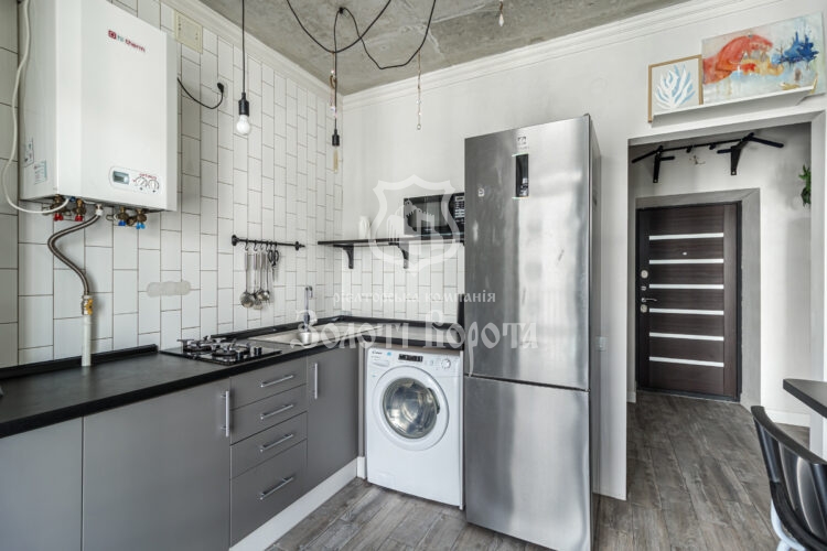 Квартира продається з повним набором меблів та техніки: вбудована кухня з варочною поверхнею та духовкою, холодильник, пральна машина, кондиціонер, двоспальне ліжко та місткий комод.