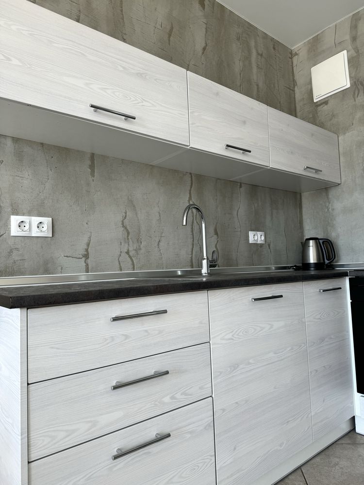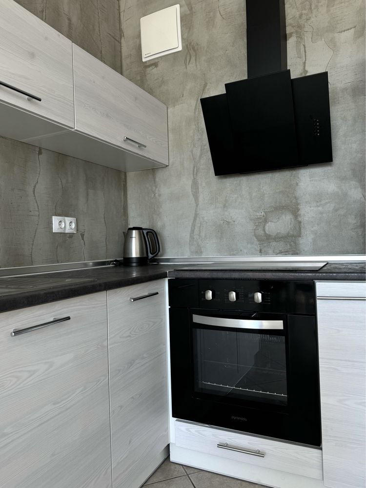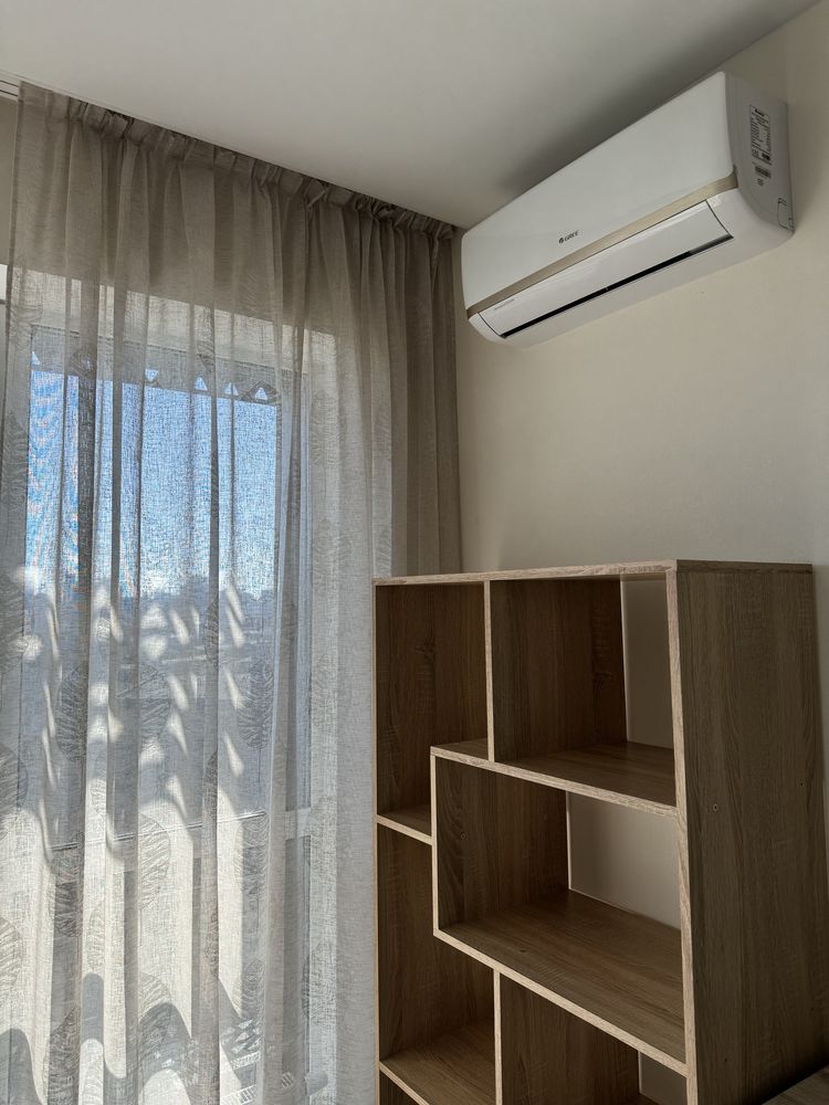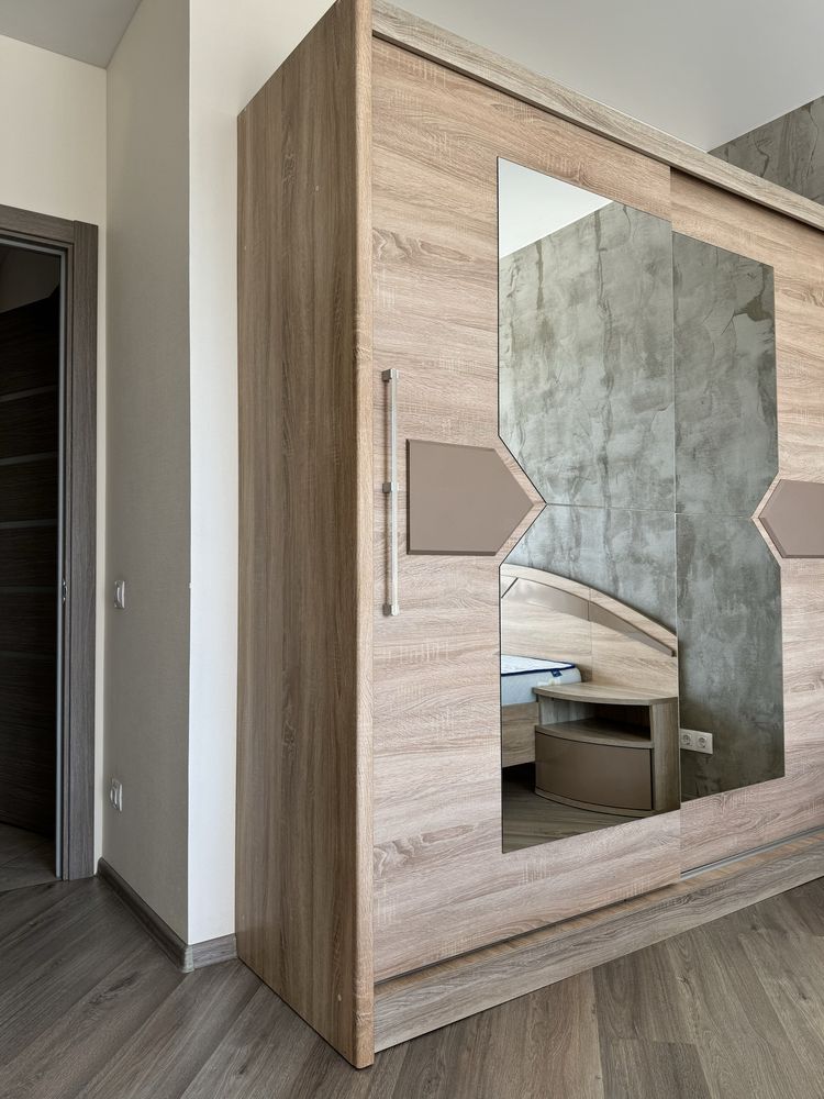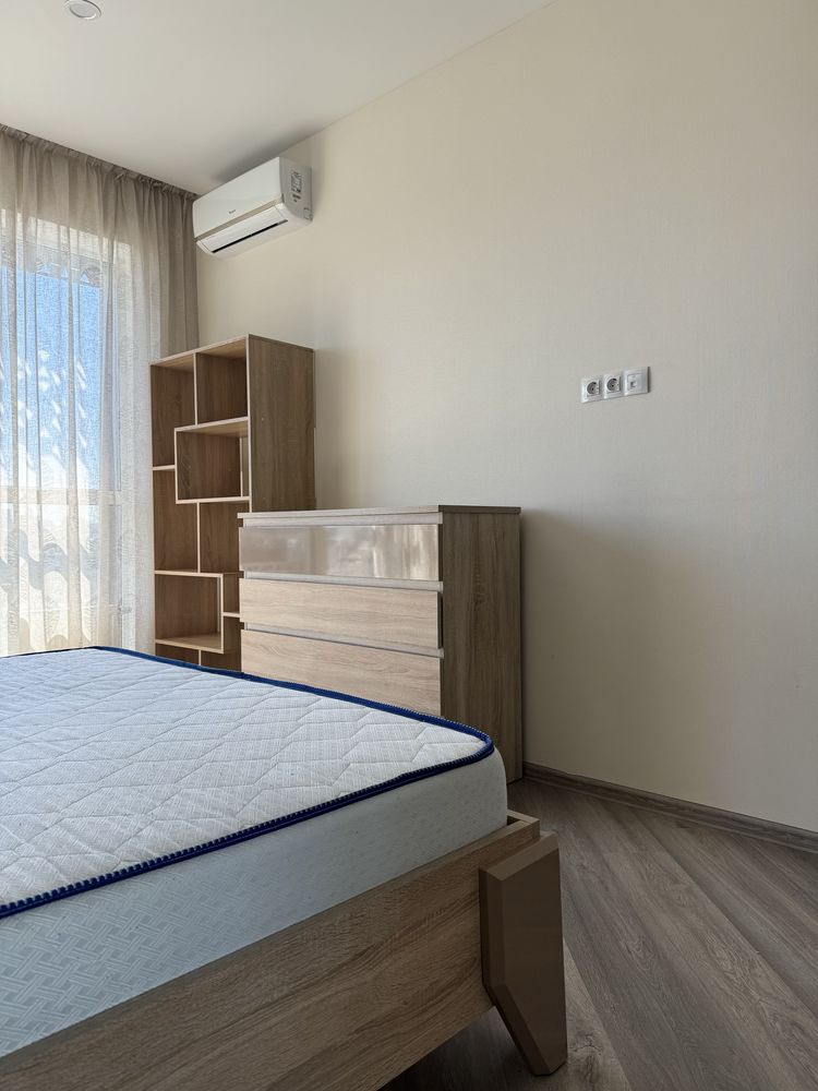 Планування — зручне та продумане. У квартирі дві окремі кімнати: спальня з меблями та кондиціонером, а також простора кухня-вітальня. Вбудована кухня укомплектована всією необхідною технікою, включаючи плиту, духовку, холодильник та витяжку. У вітальні є диван, телевізор та кондиціонер.