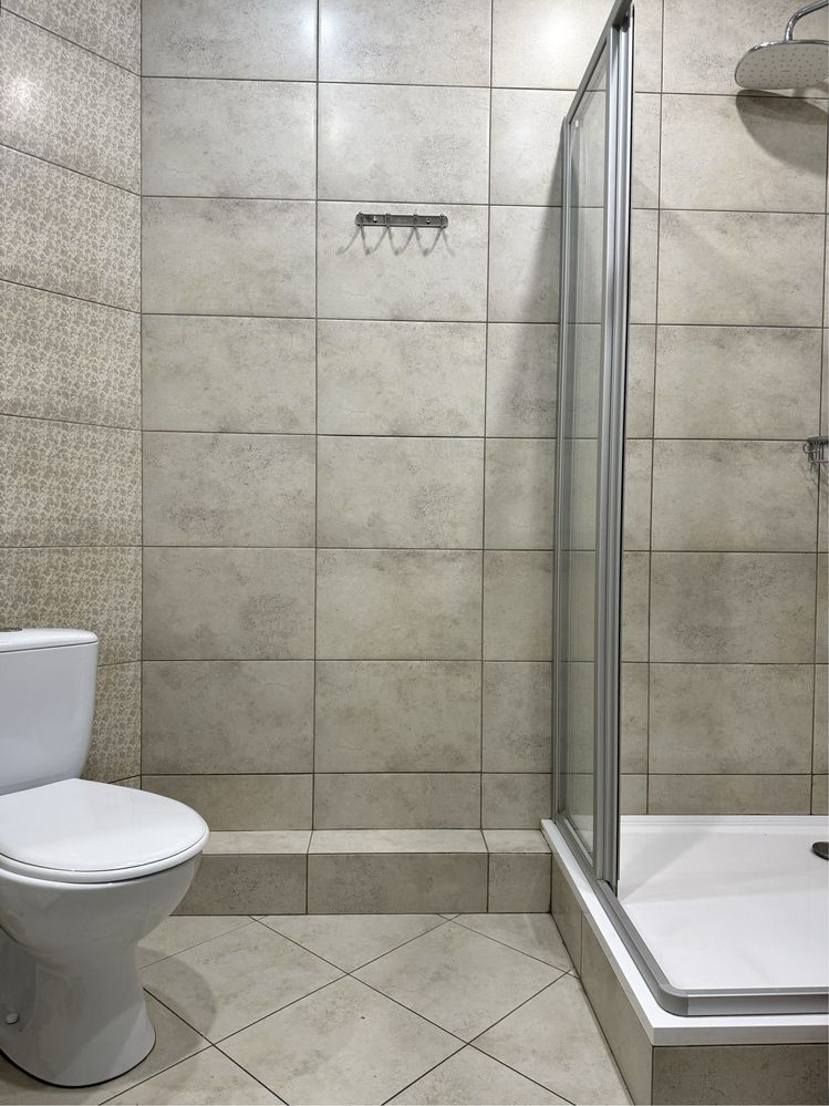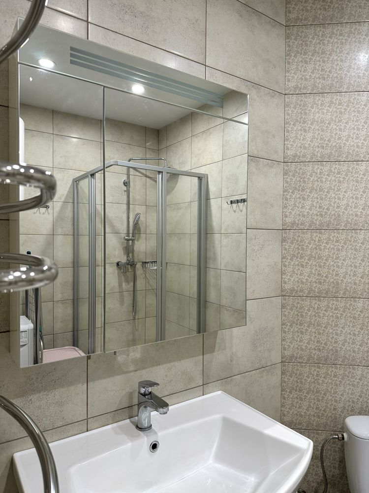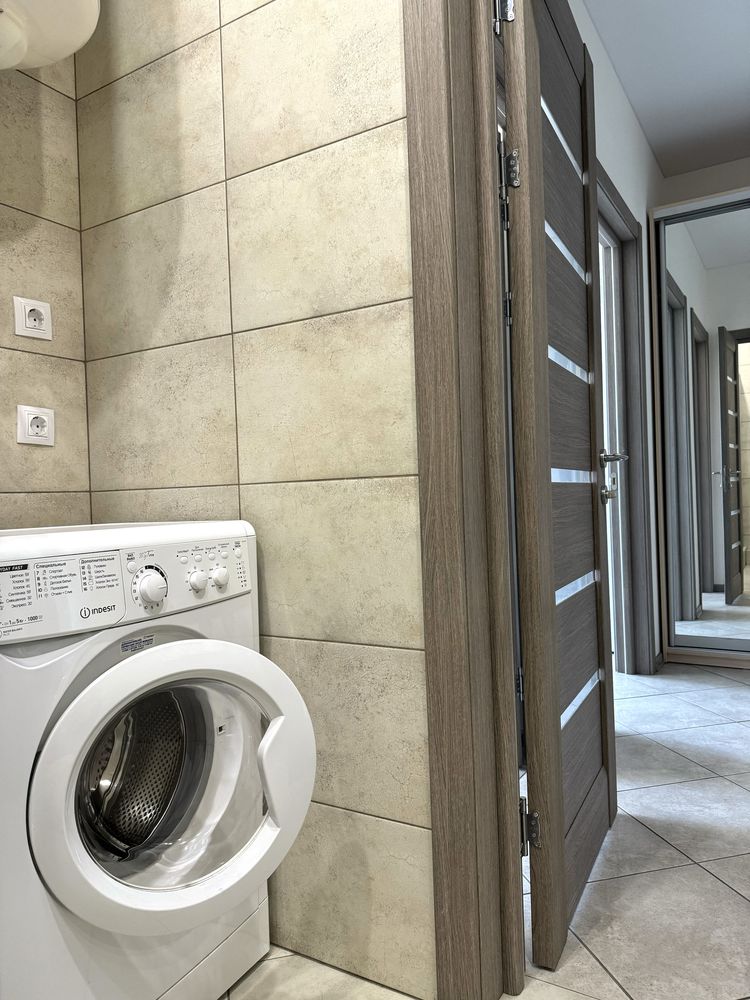 У ванній кімнаті — душова кабіна, пральна машина, бойлер та тепла підлога. У квартирі встановлені батареї з терморегуляцією, лічильники на воду та опалення, а також двозонний лічильник електроенергії.