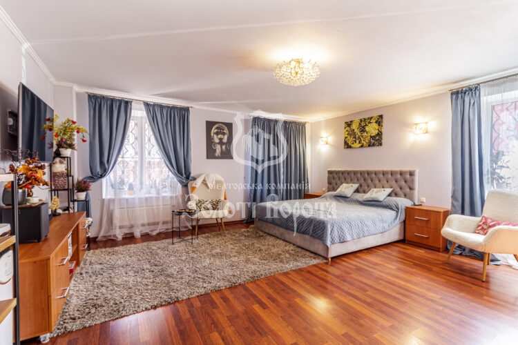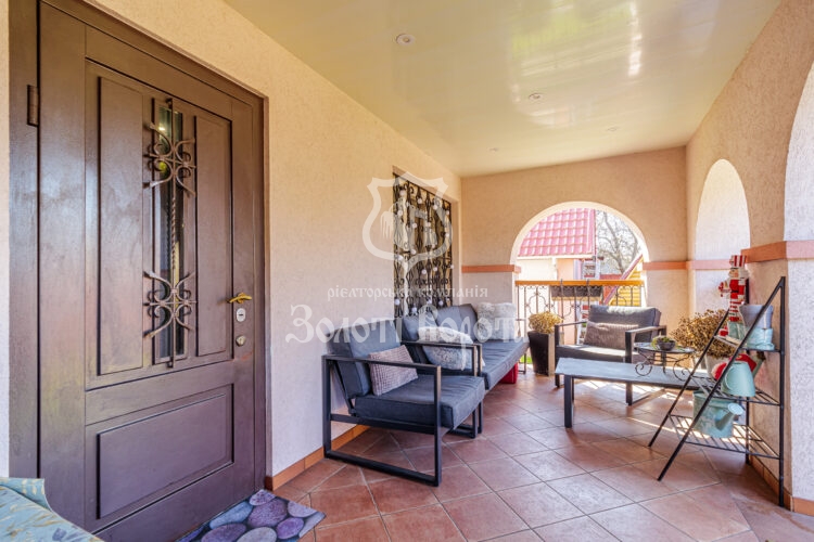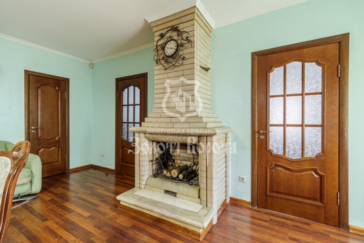 Будинок зведений «у дві цегли», утеплений та пройшов повне оновлення у 2019 році із заміною проводки. Планування включає 5 житлових кімнат: три окремі спальні, світлу залу площею 35,2 м² та затишну прохідну кімнату. Серцем першого поверху є простора вітальня з каміном та комфортною теплою підлогою. Кухня площею 13,4 м² та засклена веранда-тераса створюють чудовий простір для сімейних сніданків. У будинку облаштовано два санвузли із ванною та душем.
