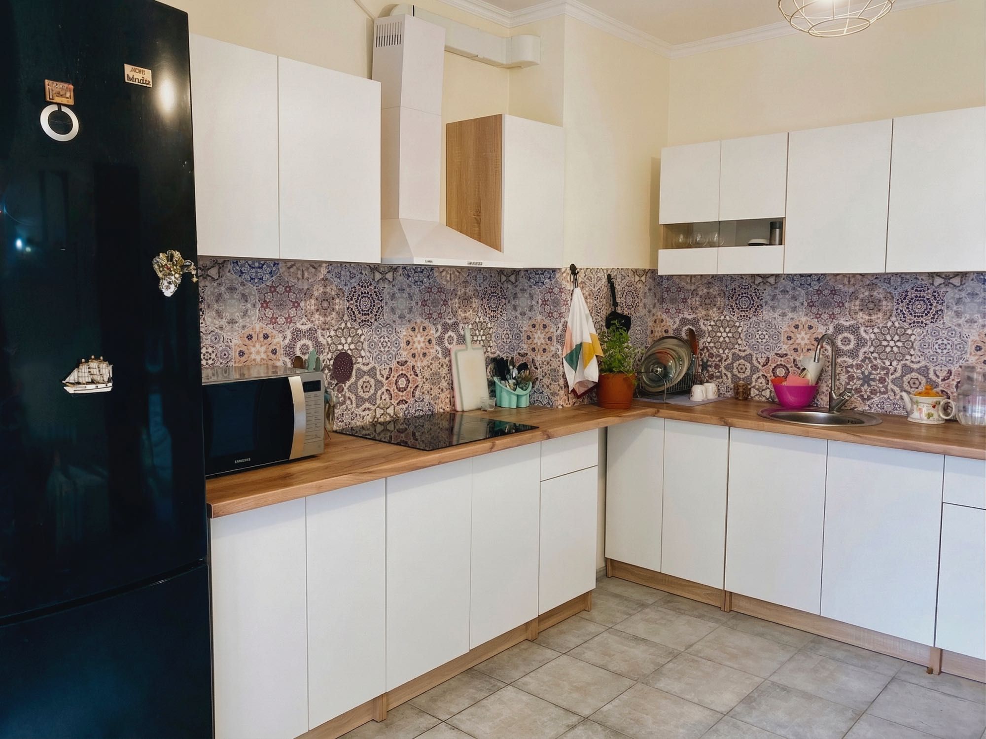 Квартира з якісним ремонтом,поєднання ламінату та плитки, зона теплої підлоги, утеплені та засклені лоджії. Просторе та функціональне планування — велика кухня з барною стійкою, окрема столова зона, багато місць для зберігання (шафи-купе, меблі у вітальні). Продається з меблями та технікою: варильна поверхня, холодильник, посудомийна машина, пральна машина та окрема сушарка.