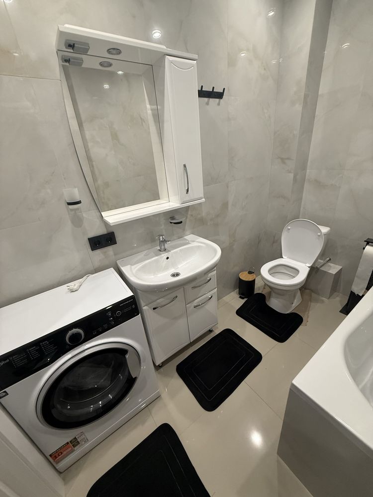 Інтер’єр виконаний у сучасному стилі з якісних матеріалів: тепла підлога по всій квартирі, меблі виготовлені під замовлення, встановлена дорога побутова техніка. Простір продуманий до дрібниць — зручно жити щодня. Це той випадок, коли не потрібно нічого доробляти — заїхав і живеш. Додатково є можливість придбати кладову 4 м² на поверсі.