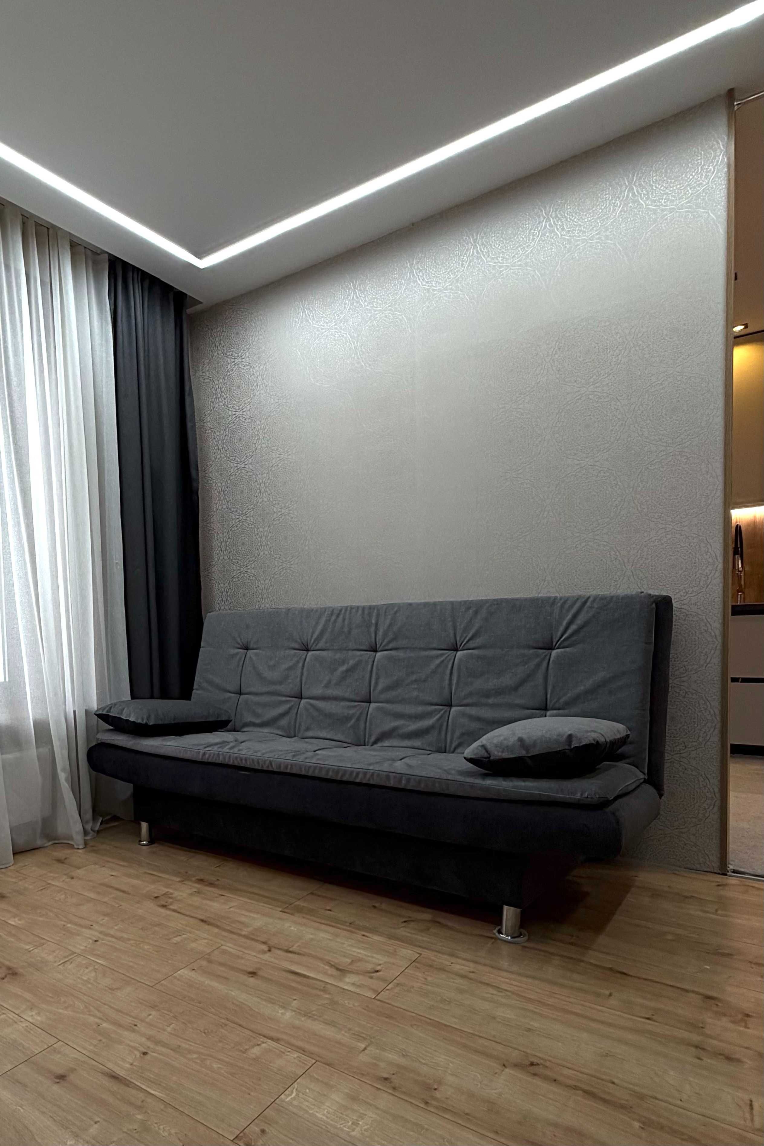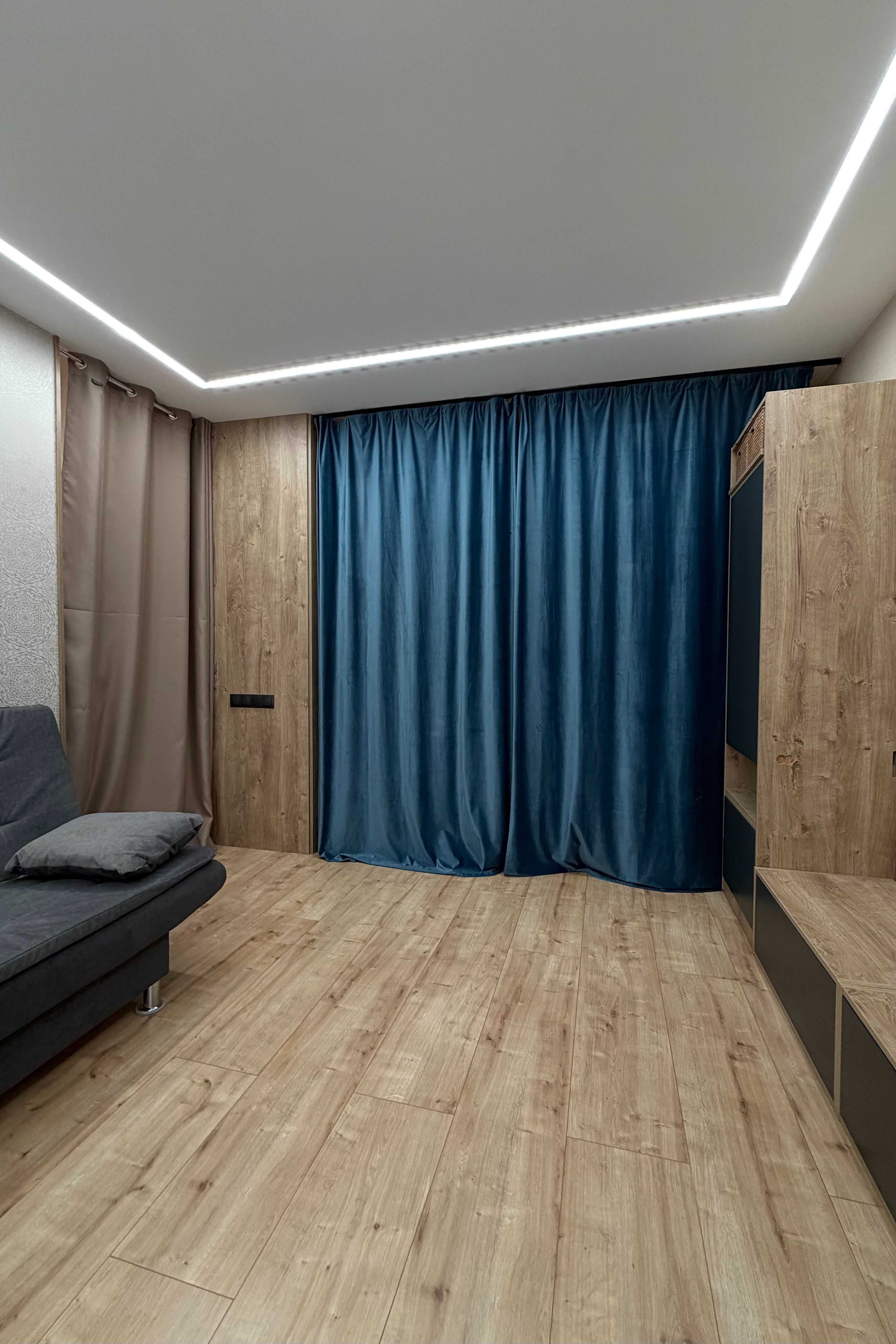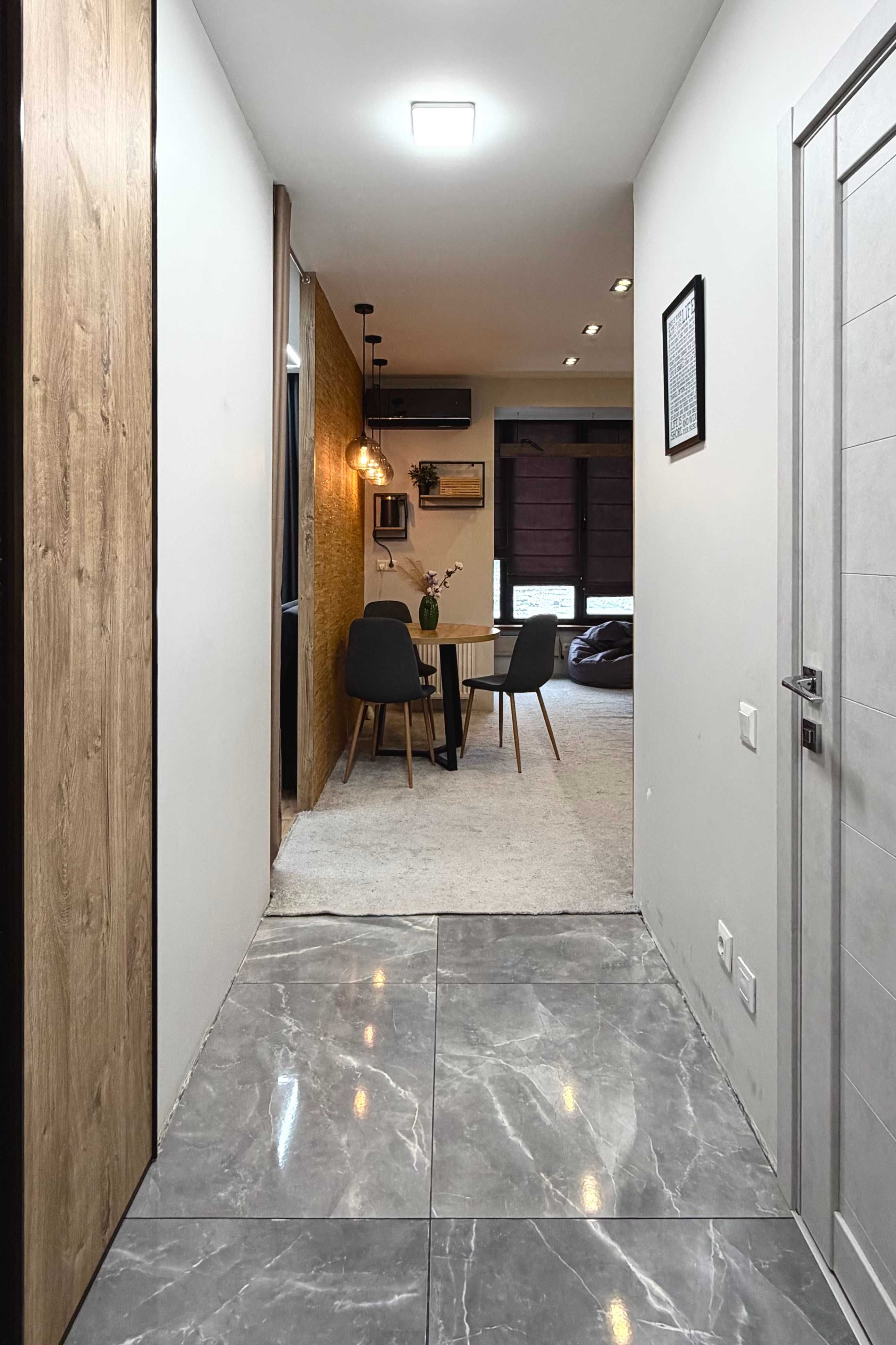 Квартира перепланована у формат 2-кімнатної студії — простір організовано максимально функціонально. Виконано утеплення, замінено вікна та двері на енергоефективні, приєднана лоджія. Встановлено меблі та техніку, які залишаються новому власнику. Сучасні рішення: ліжко-трансформер, що економить простір, стильна кухня з рухомим фартухом та додатковими нішами, передбачене місце під резервне живлення. Формат «заїжджай і живи» без додаткових вкладень.