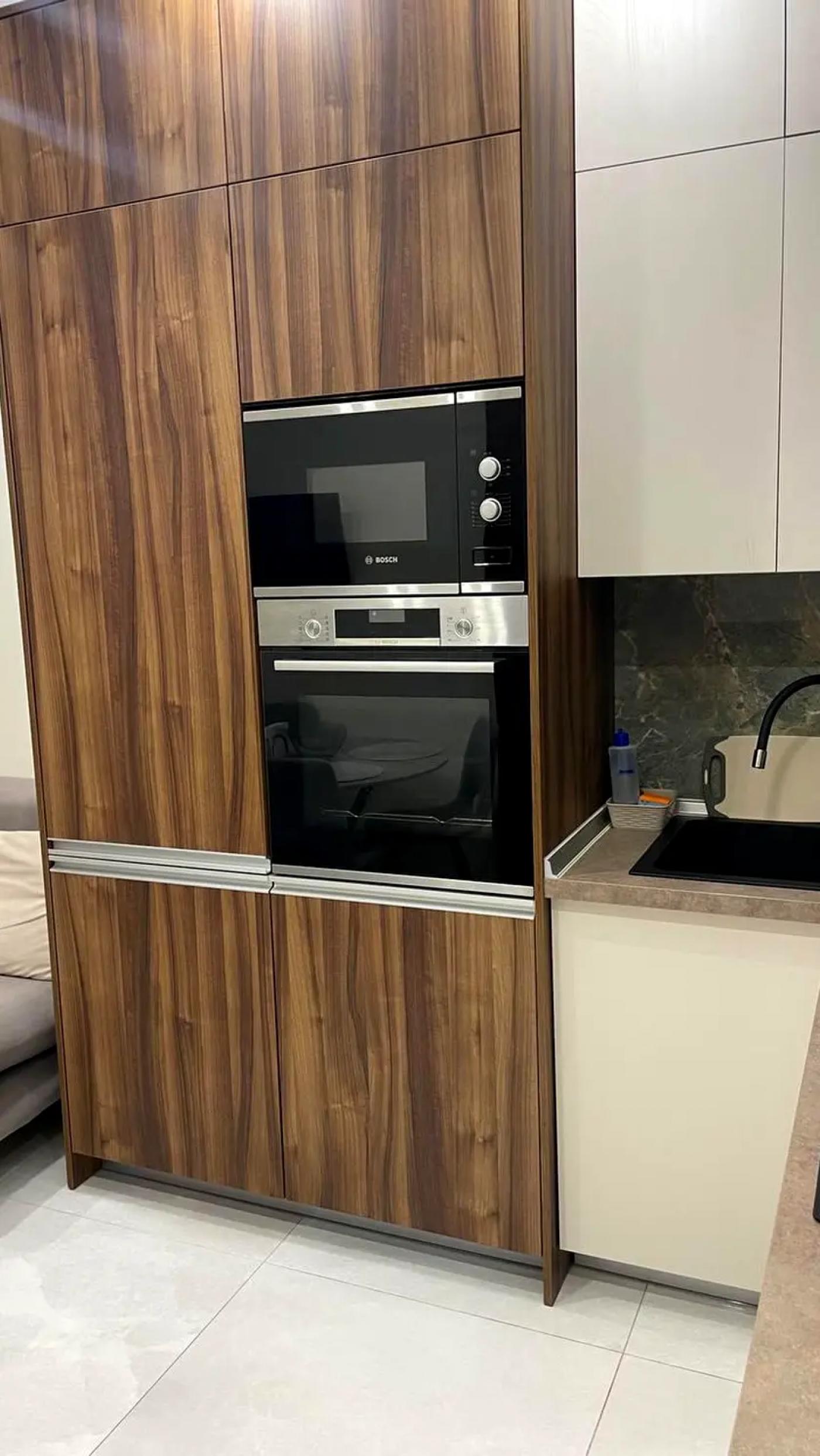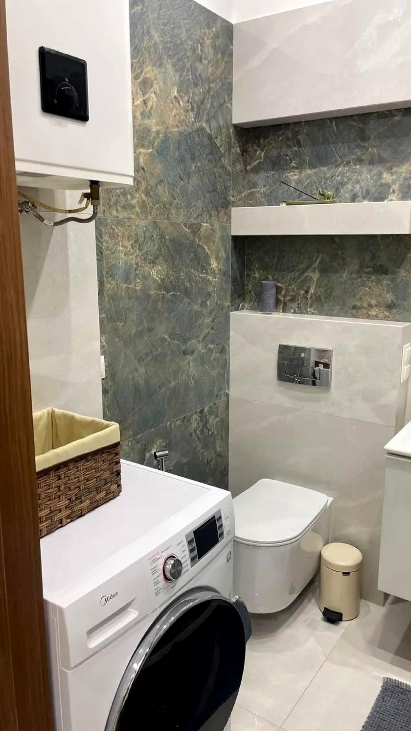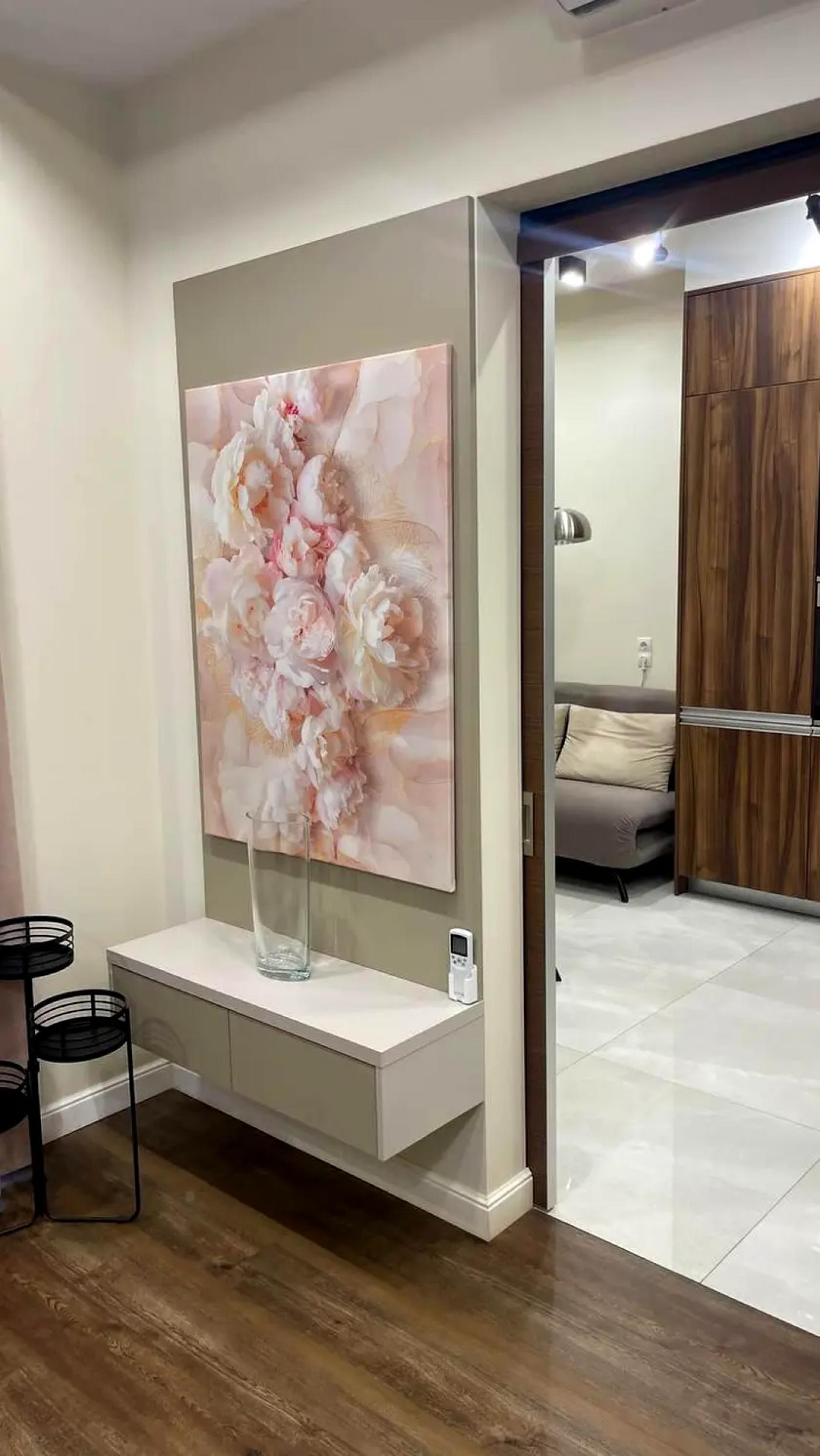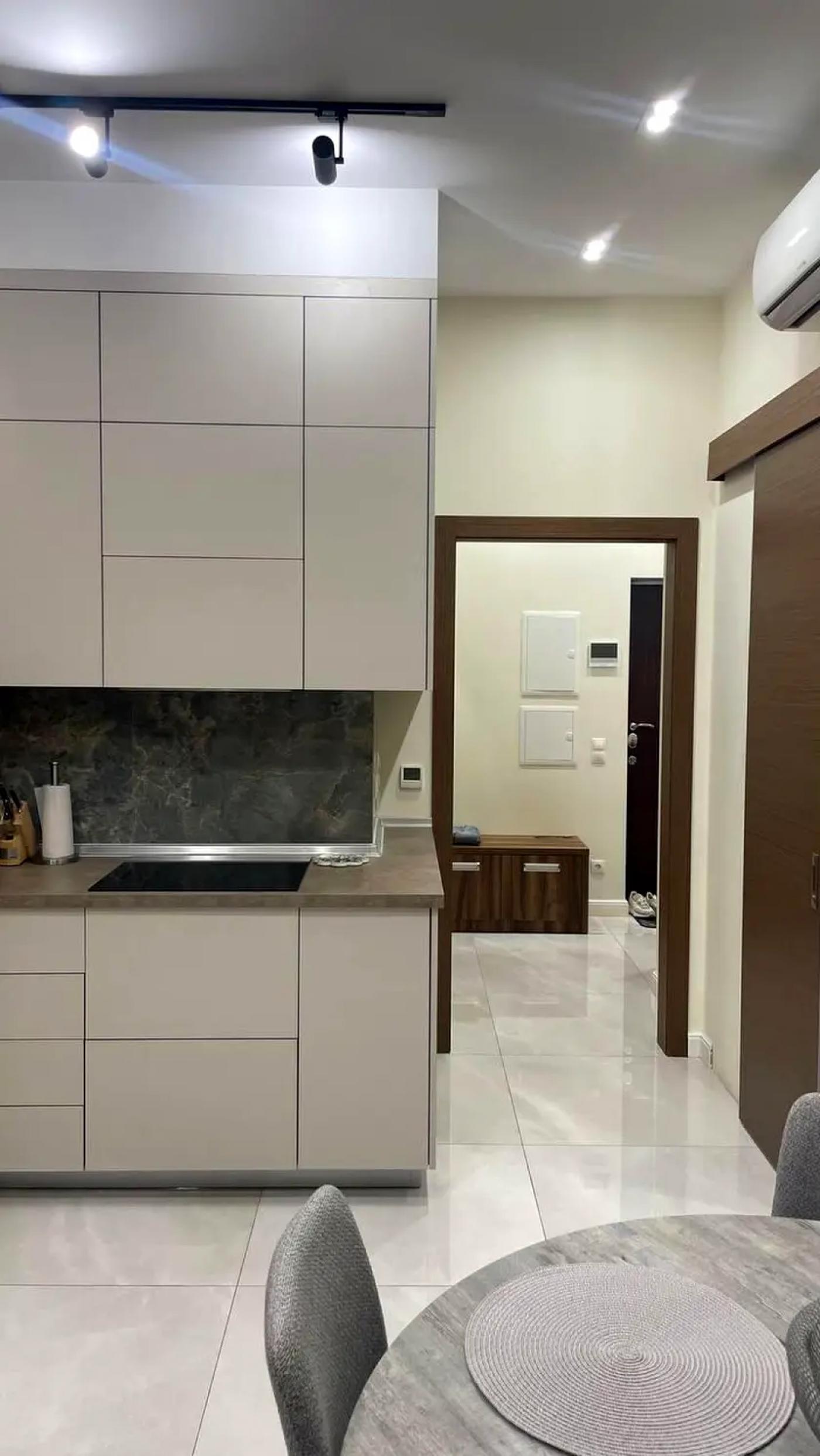 Квартира має просторе та функціональне планування, високі стелі 3,3 м та панорамні вікна, що наповнюють простір світлом і відкривають приємні краєвиди. Це ідеальний варіант як для комфортного проживання, так і для створення індивідуального дизайнерського інтер’єру.