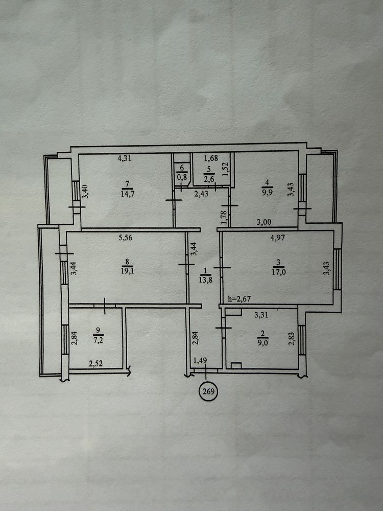 Загальна площа — 95 кв.м. Раціональне планування: п’ять окремих кімнат, окрема кухня, санвузол, а також три балкони, один з яких має підвал — додатковий простір для зберігання.
