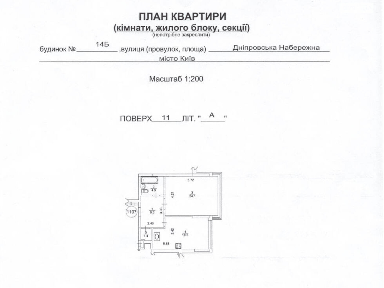 Пропонується до продажу 1-кімнатна квартира у Дарницькому районі, вул. Дніпровська Набережна, 14Б, ЖК «River Stone». Квартира розташована на 11 поверсі, загальна площа 57 м². Будинок монолітно-каркасний, збудований у 2013–2018 роках (бізнес-клас). Планування функціональне: простора кімната, велика кухня, санвузол. Квартира використовувалась під офіс, виконаний ремонт під комерційні потреби, що дозволяє легко адаптувати простір як під житло, так і під бізнес або студію