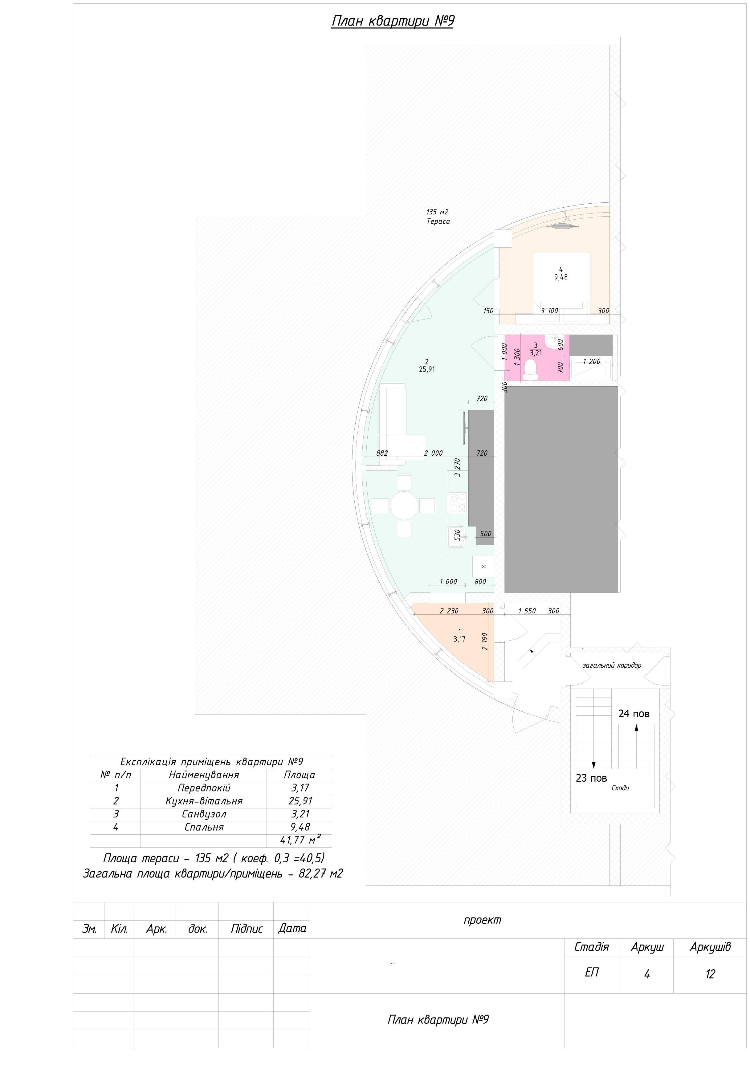 Пропонується до продажу унікальний пентхаус (офіційно нежитлове приміщення) за адресою вул. Микільсько-Слобідська, 6Б, Дніпровський район, Київ. Розташований на 24 поверсі монолітно-каркасного будинку, орієнтовний рік побудови — 2008–2013, матеріал — моноліт із цегляним заповненням. Загальна площа — 177 м², з яких 135 м² — велика приватна тераса, та 42 м² — житлова зона. Формат планування — вільний (open space) з можливістю організації кухні-вітальні та окремої спальні