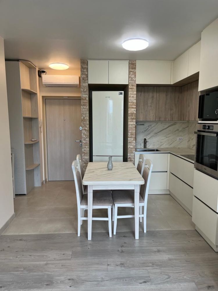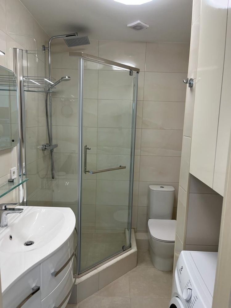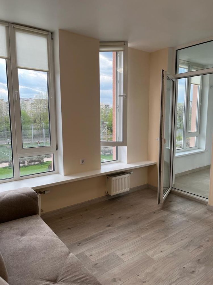 Простір організовано максимально ефективно: кухня-вітальня, окрема спальня та лоджія з доступом із двох зон. Інтер’єр виконаний у сучасному стилі — світлі стіни, великі вікна, багато природного світла. Квартира повністю укомплектована технікою: бойлер, пральна машина з функцією сушіння, кондиціонер, холодильник, індукційна плита, духова шафа, витяжка. Передбачено достатньо місць для зберігання: дві шафи-купе, приховані кухонні секції, розсувні двері для економії простору. Ідеальний варіант як для життя, так і для інвестиції під оренду