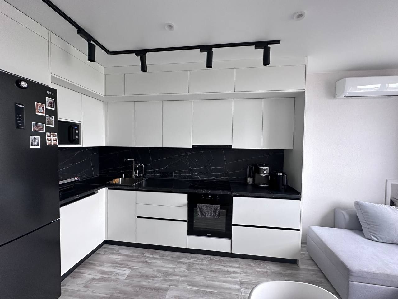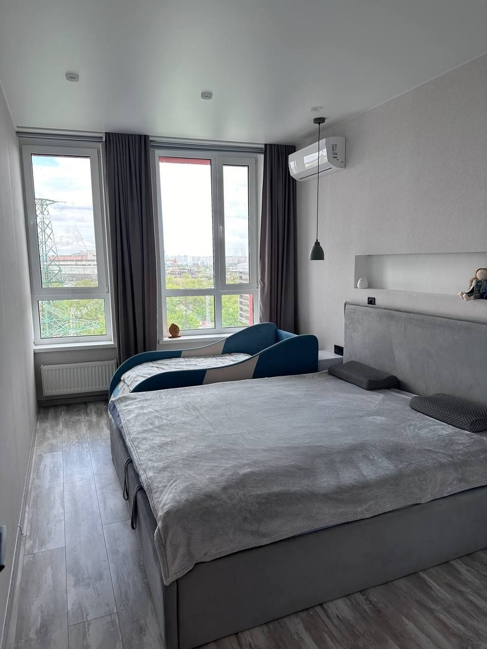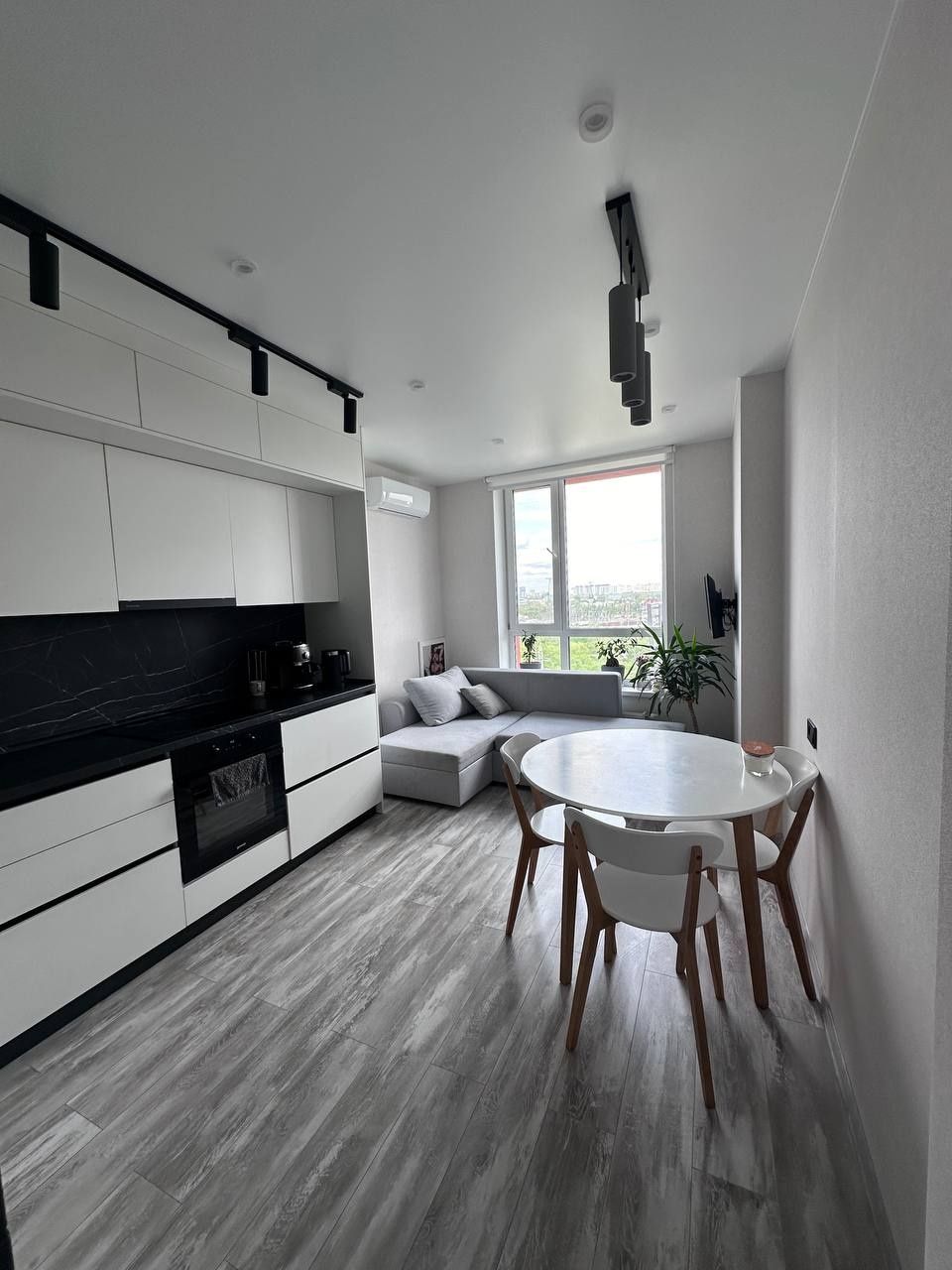 У квартирі виконано якісний сучасний ремонт, встановлені меблі та техніка, продумано зони зберігання. Кухня-вітальня стала більш просторою завдяки об’єднанню з лоджією, що створює додаткове місце для відпочинку або роботи. У дитячій облаштовано повноцінний простір із меблями. Важлива перевага — автономність: будинок обладнаний інверторами, що забезпечують роботу ліфтів, водопостачання та опалення навіть під час відключень електроенергії