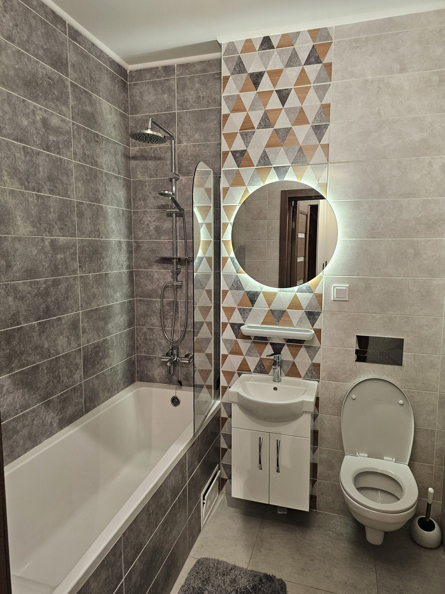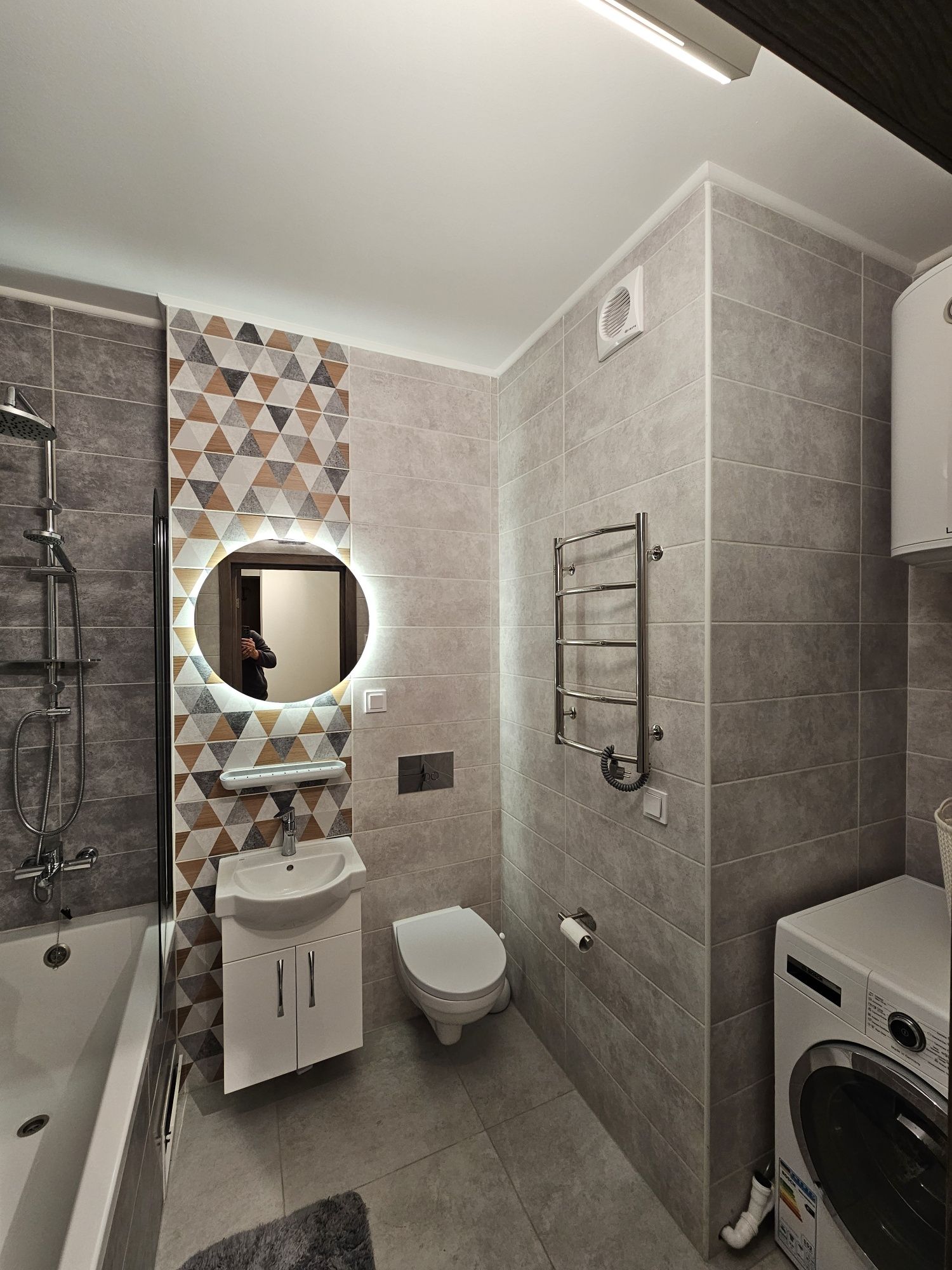 Квартира щойно після якісного ремонту, повністю укомплектована сучасними меблями та дорогою технікою. Продумане зонування дозволяє максимально ефективно використовувати площу. Встановлена тепла підлога у ванній кімнаті, броньовані двері з шумоізоляцією, відеодомофон та датчики безпеки. Окремою перевагою є система автономності: встановлені акумулятори високої ємності з інвертором, що забезпечують роботу необхідних приладів до кількох днів, а також стабільне водопостачання навіть під час відключень. Опалення централізоване від власної котельні будинку