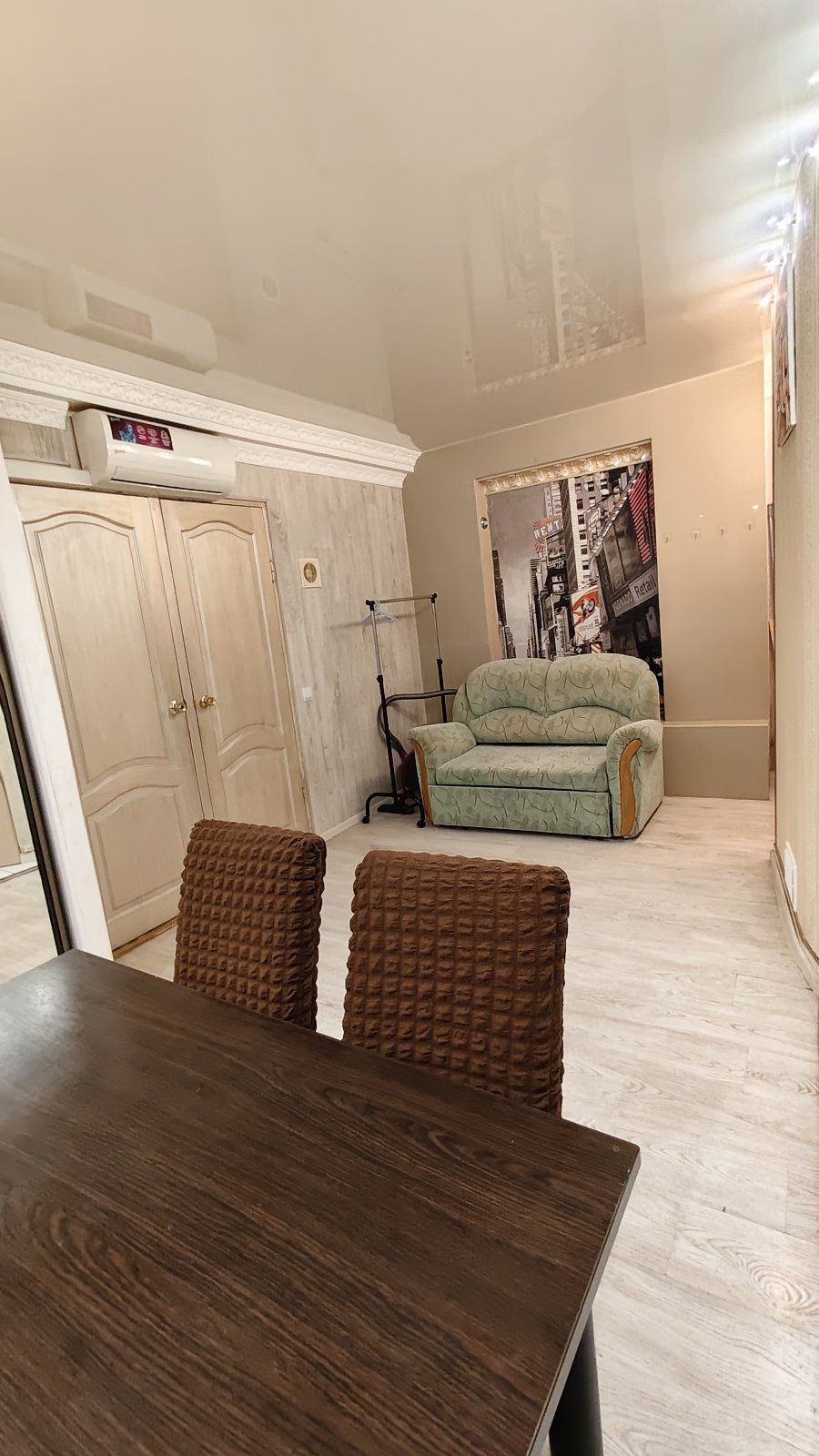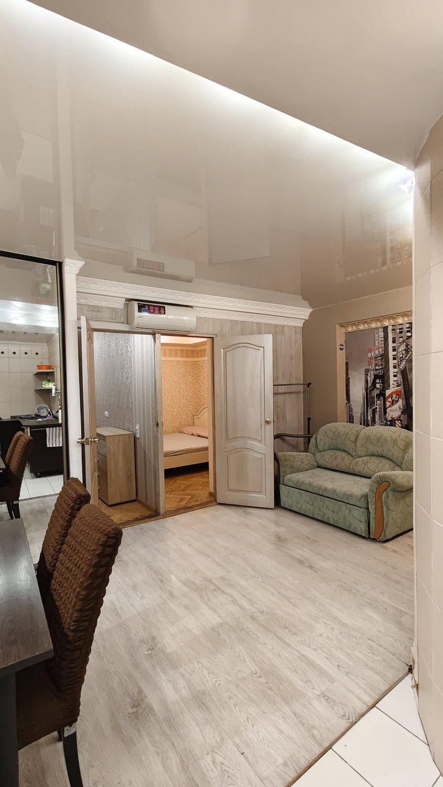 Загальна площа — 42 м². Квартира фактично перепланована у формат трикімнатної: кухня-вітальня та дві окремі спальні, що робить її максимально практичною як для сім’ї, так і для орендного бізнесу. Є два санвузли, що рідкість для такої площі. У квартирі є газ та централізоване опалення, що забезпечує стабільність у користуванні та комфорт у будь-яку пору року
