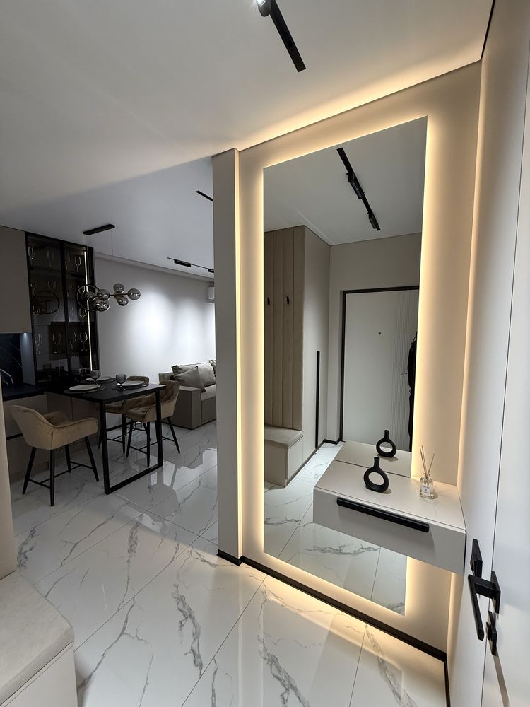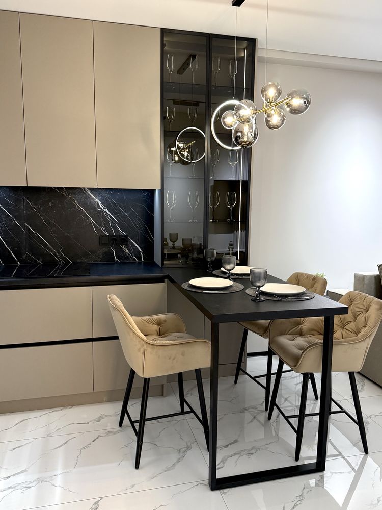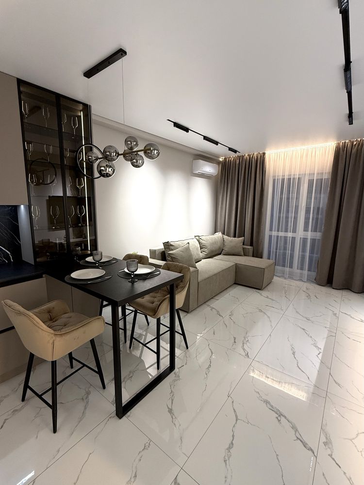 Загальна площа — 42 м². Квартира виконана за індивідуальним дизайнерським проєктом із максимальним використанням простору: окрема спальня, простора кухня-вітальня, гардеробна та суміжний санвузол. Використані якісні матеріали, встановлено підігрів підлоги у ванній кімнаті та зоні кухні. Повністю укомплектована технікою та меблями преміального рівня, що дозволяє одразу заїхати без додаткових вкладень