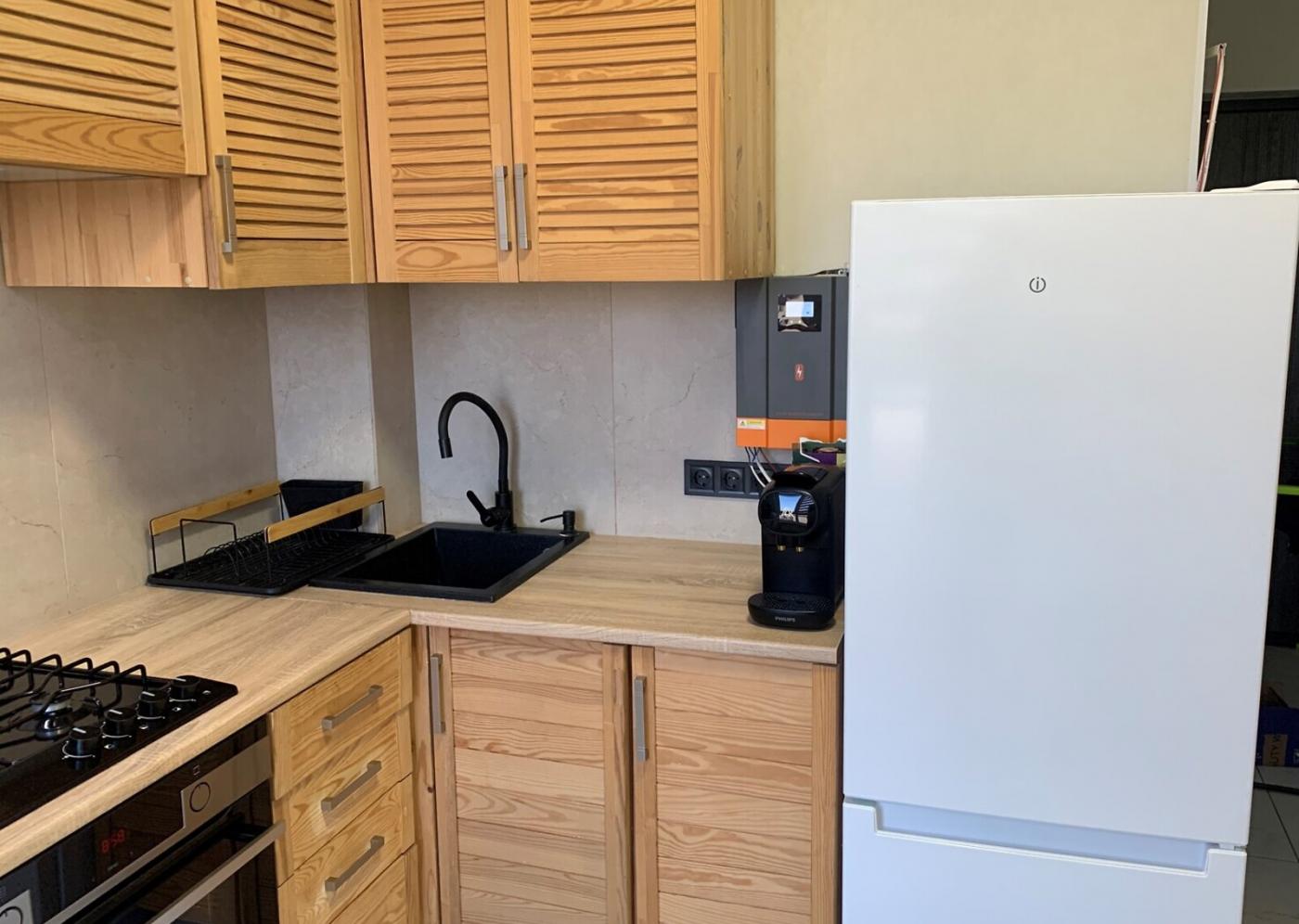Квартира розташована на 5 поверсі та має площу 24 м² з висотою стелі 2,6 м. Простір організовано максимально ефективно — квартира повністю укомплектована меблями та технікою, все у відмінному стані. Встановлено індивідуальне газове опалення (двоконтурний котел) та теплу підлогу, що забезпечує автономність і контроль витрат. Додатковою перевагою є система резервного живлення з інвертором і акумуляторами, що дозволяє користуватися основними приладами під час відключень електроенергії. Квартира готова для заселення без додаткових вкладень