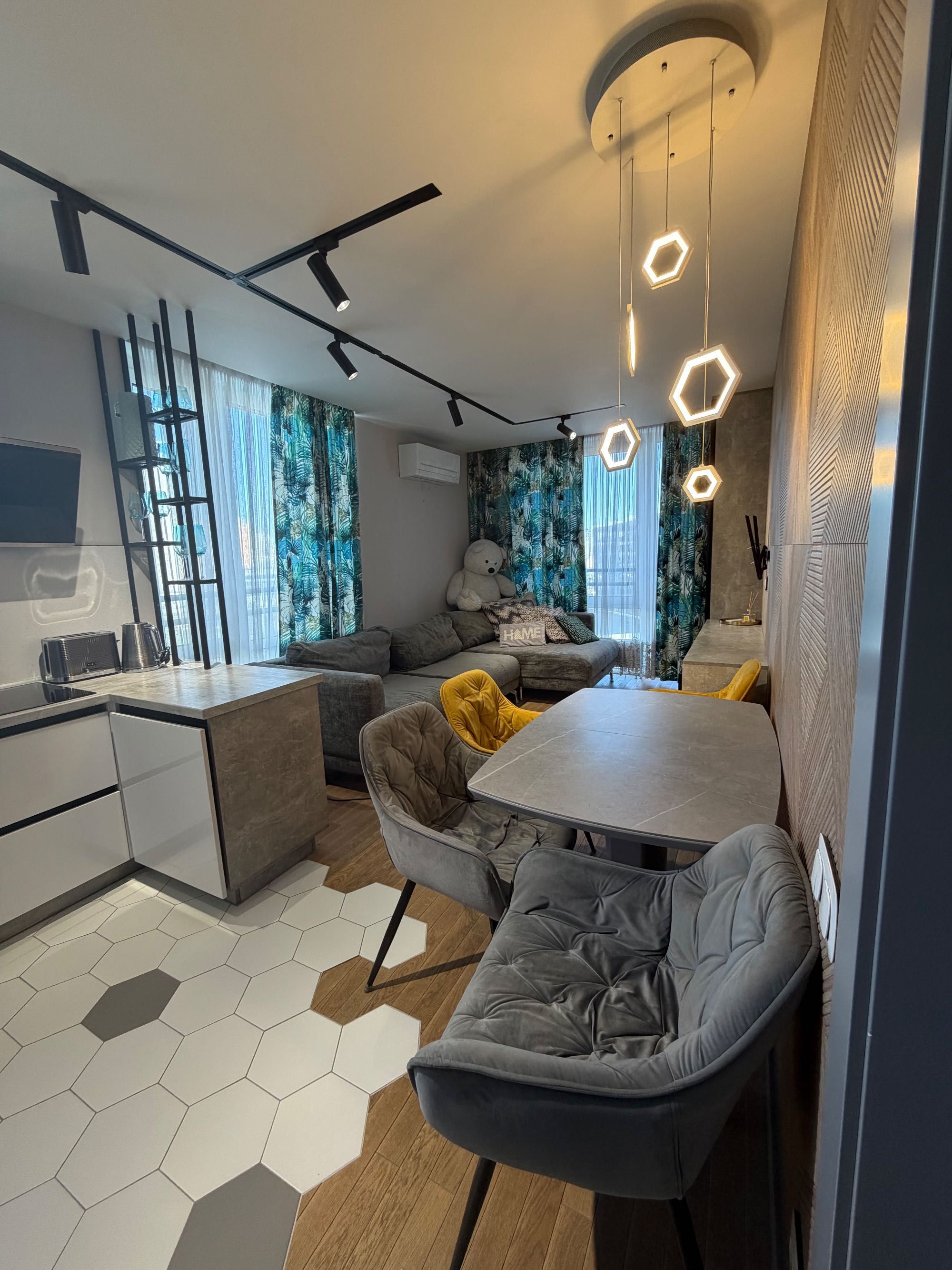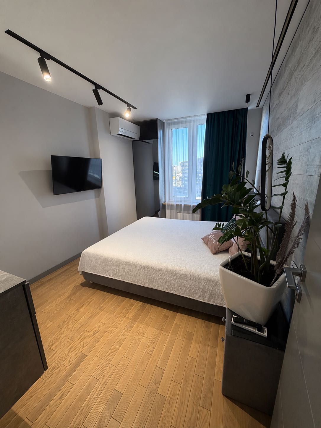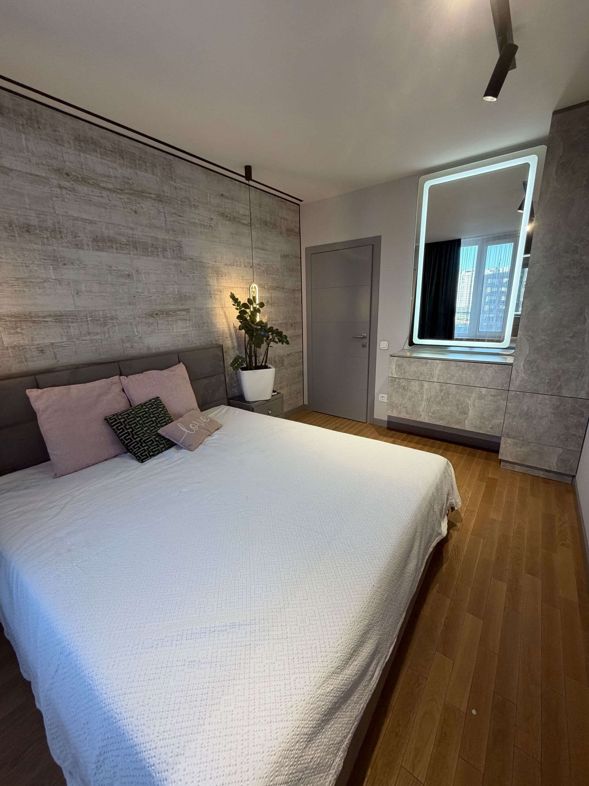 Це простір, у який заходиш і одразу відчуваєш рівень — продумане планування, багато світла та відчуття справжнього комфорту. Двокімнатна квартира з авторським ремонтом: дві окремі спальні, простора кухня-вітальня, гардеробна та панорамні вікна, що відкривають приємний міський вид. Інтер’єр виконаний із якісних матеріалів: натуральний паркет, керамограніт, сучасне освітлення, стильні меблі та преміальна техніка — усе вже готово для життя без додаткових витрат.