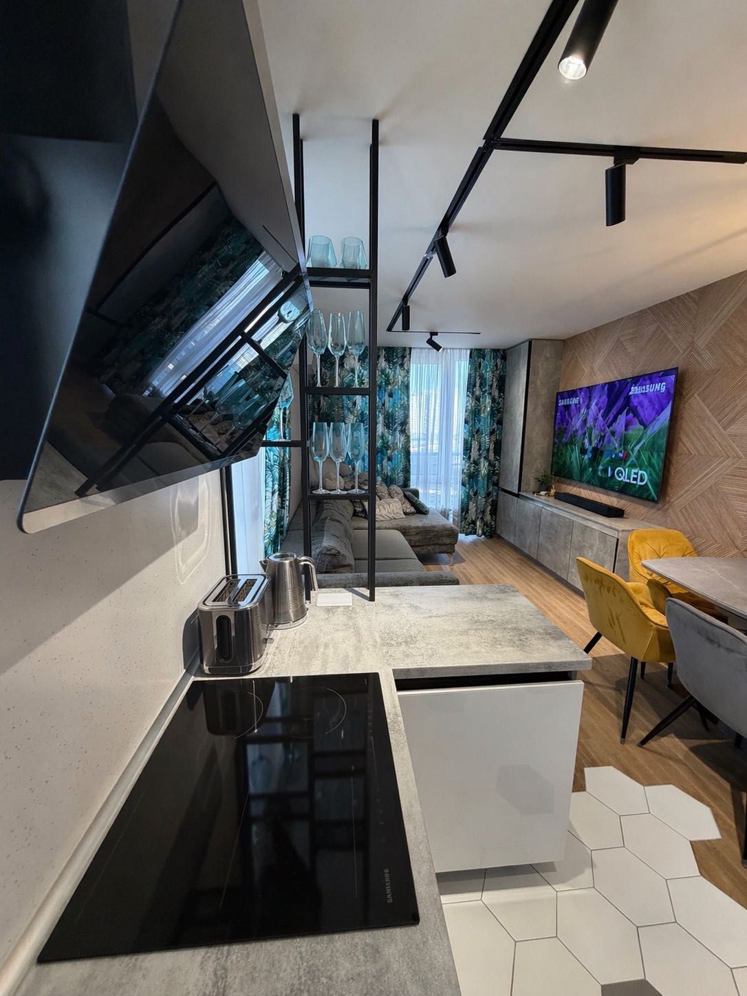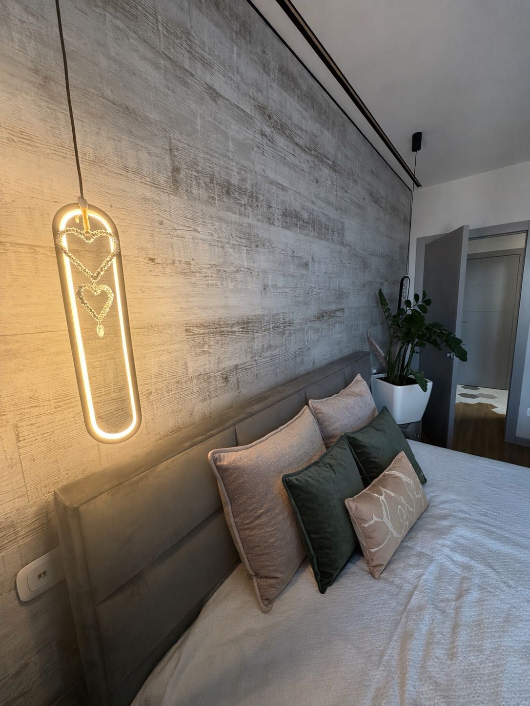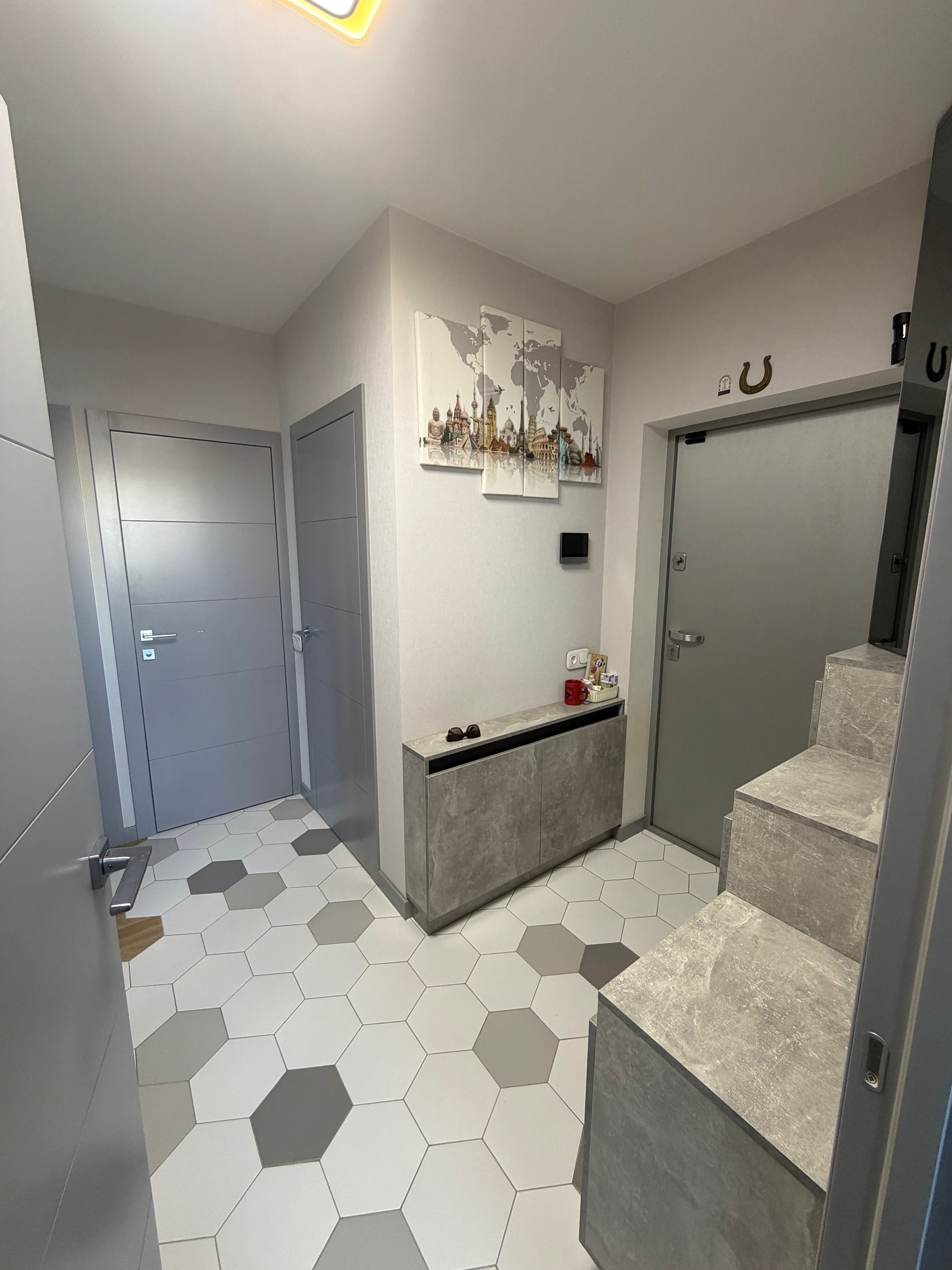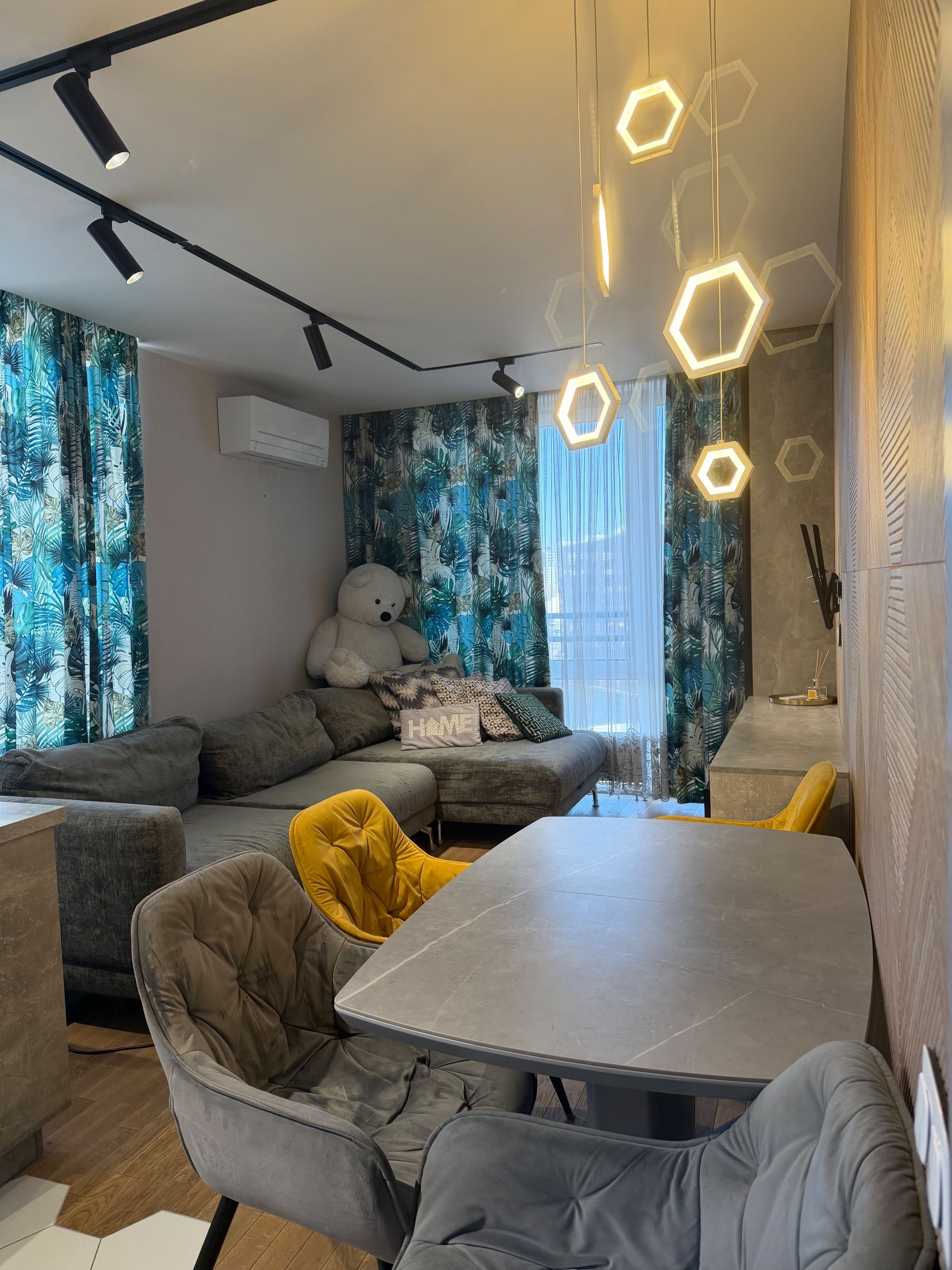 Це простір, у який заходиш і одразу відчуваєш рівень — продумане планування, багато світла та відчуття справжнього комфорту. Двокімнатна квартира з авторським ремонтом: дві окремі спальні, простора кухня-вітальня, гардеробна та панорамні вікна, що відкривають приємний міський вид. Інтер’єр виконаний із якісних матеріалів: натуральний паркет, керамограніт, сучасне освітлення, стильні меблі та преміальна техніка — усе вже готово для життя без додаткових витрат.