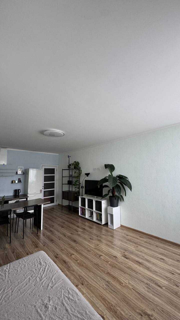 Пропонується до продажу сучасна євродвушка у Голосіївському районі, Теремки-1, вул. Теремківська, 3а. Квартира розташована на комфортному 8 поверсі з західною орієнтацією вікон — щоденні заходи сонця та багато природного світла створюють особливу атмосферу. Будинок монолітно-каркасний, збудований у 2015–2018 роках, сучасний житловий фонд із якісними комунікаціями та високим рівнем обслуговування. Простір продуманий: кухня-вітальня, окрема спальня, гардеробна та засклений балкон, який використовується як повноцінна робоча зона.