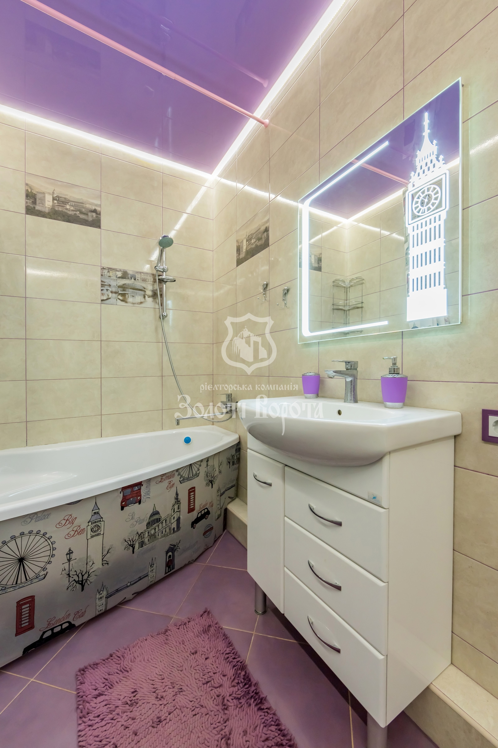 Квартира вирізняється ремонтом у гарному стані та грамотним зонуванням простору. Особливу увагу приділено освітленню: встановлена ефектна підсвітка по периметру кімнати та ванної кімнати, а також дзеркала зі спеціальним підсвічуванням, що забезпечує комфортні умови для щоденного догляду.