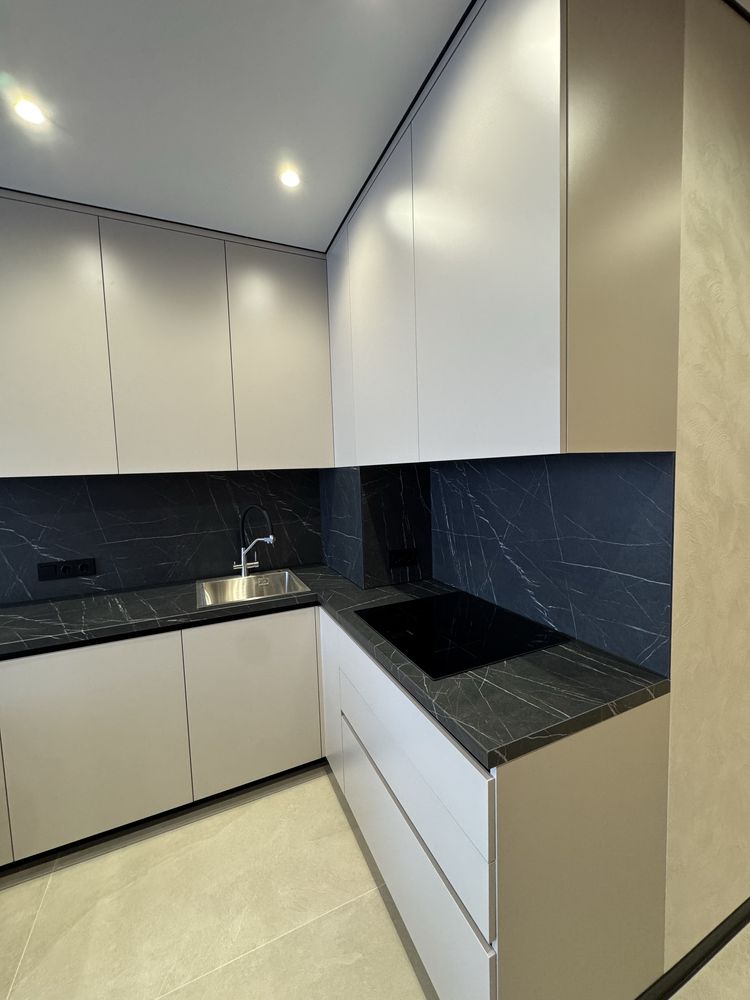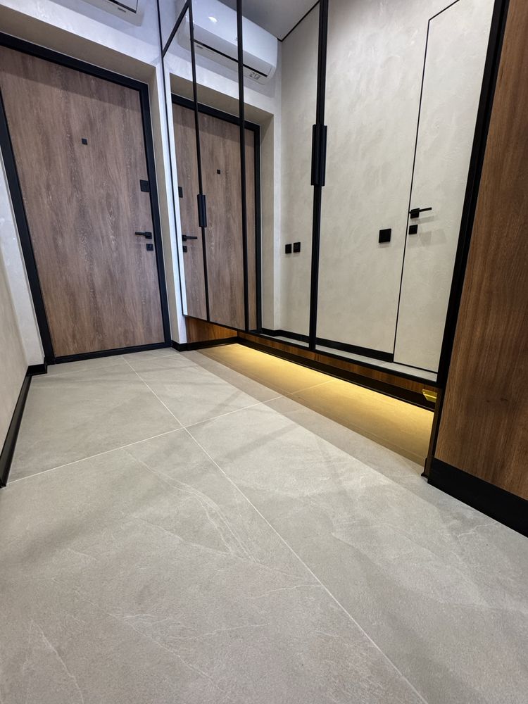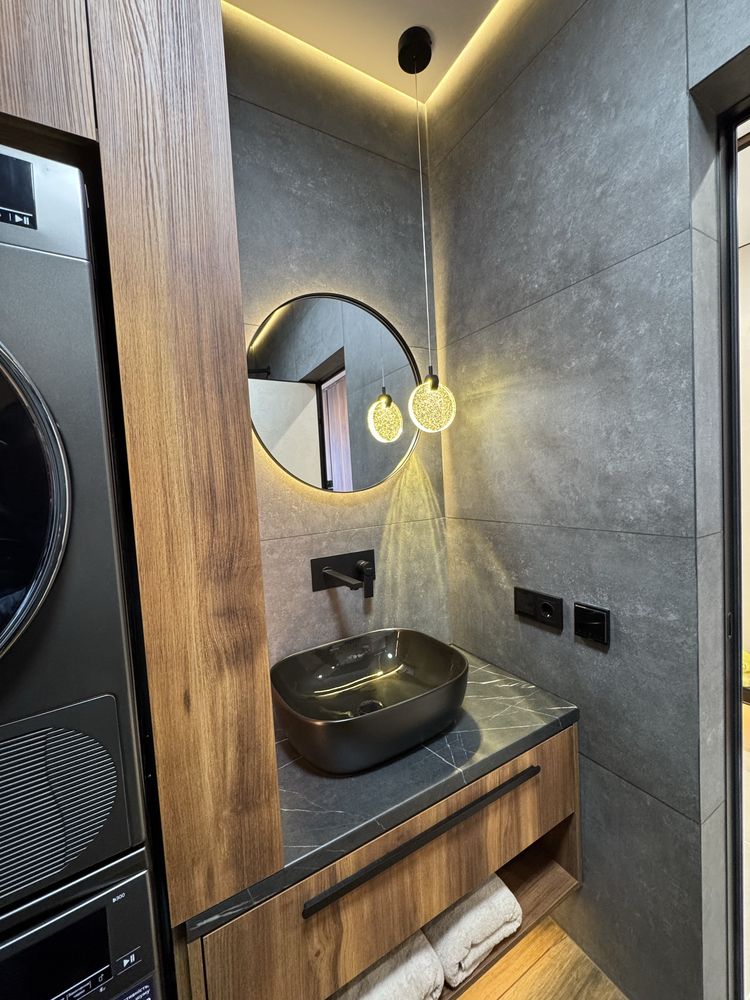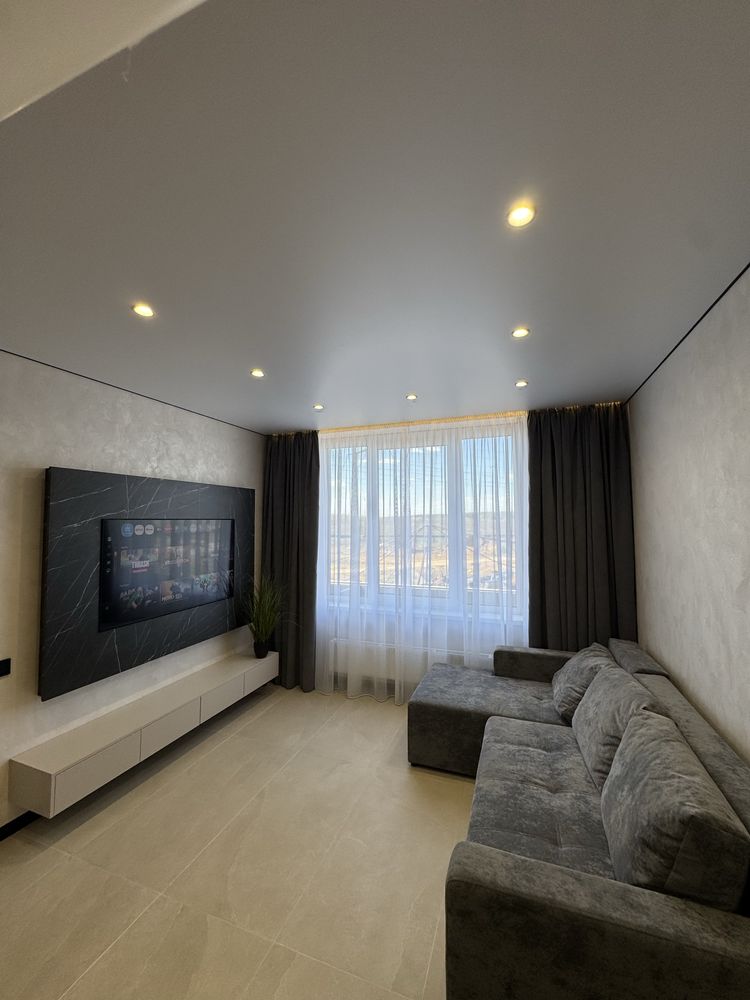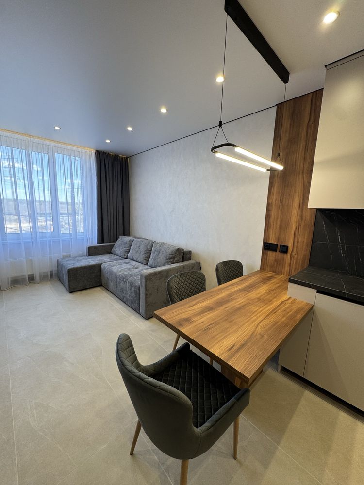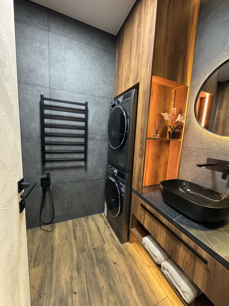 Квартира з дизайнерським ремонтом, виконаним із якісних матеріалів: декоративна штукатурка, тепла підлога у ванній, коридорі та кухні, продумане багаторівневе освітлення. Повністю укомплектована меблями та технікою: двоспальне ліжко з підйомним механізмом, шафи, кухня з обідньою зоною та диваном. Встановлено фільтрацію води та систему осмосу, пральну та сушильну машини, посудомийну машину, кондиціонер, холодильник, індукційну плиту, духову шафу та мікрохвильову піч. Будинок оснащений генератором — працюють ліфти та опалення під час відключень світла.