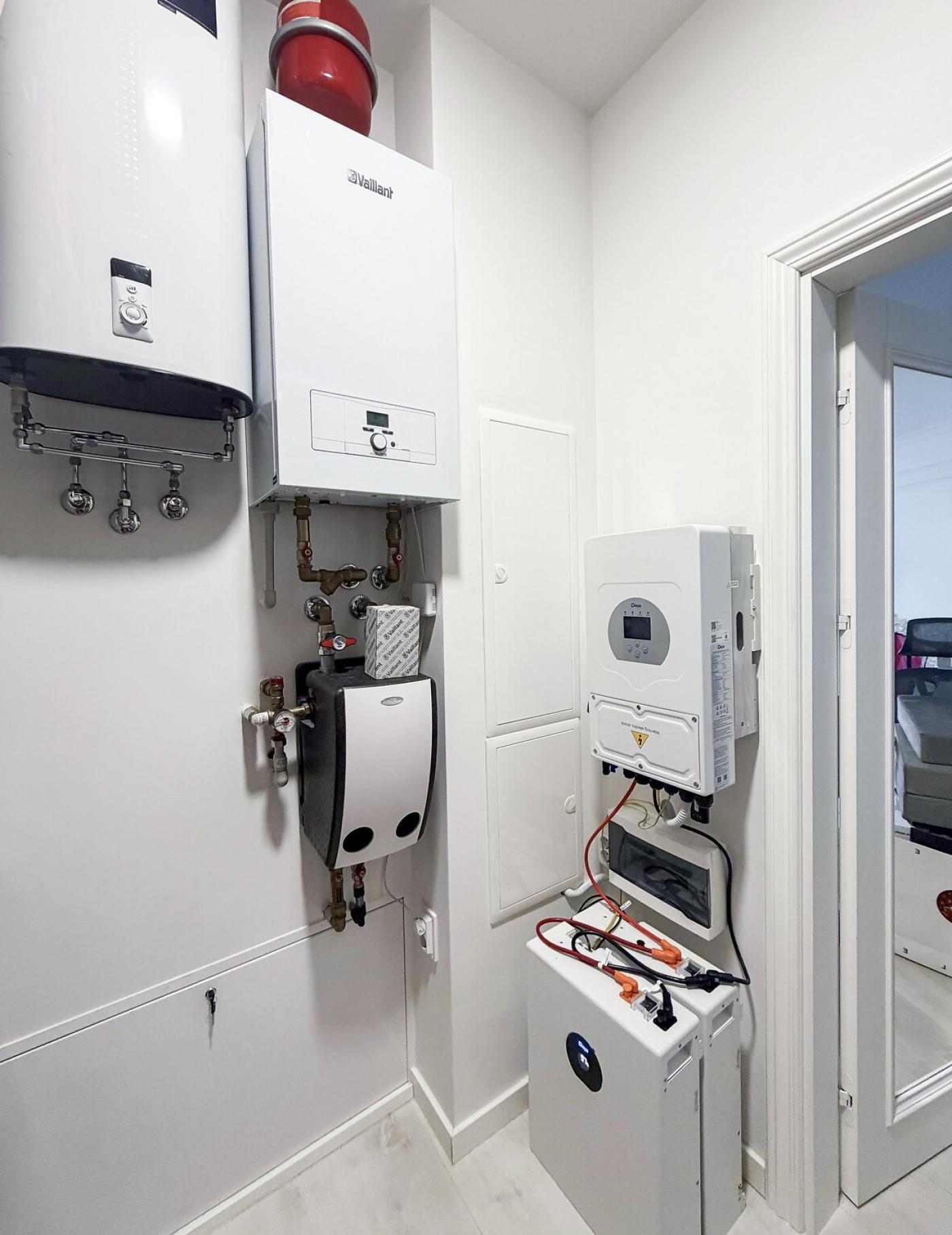 Квартира виконана у сучасному стилі з використанням преміальних матеріалів, в інтер’єрі використані італійські меблі. Встановлено індивідуальне опалення разом із централізованим, тепла підлога, бойлер, сучасна побутова техніка: посудомийна машина, пральна та сушильна машина. Простір функціональний, світлий і повністю готовий до комфортного проживання без додаткових вкладень.