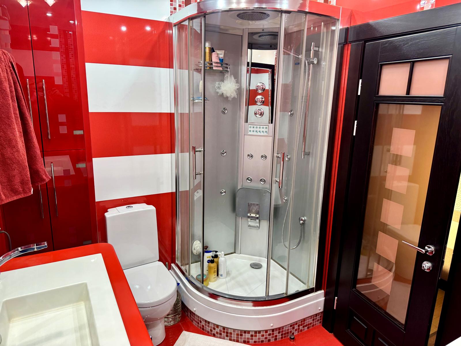 Виконаний дизайнерський ремонт із використанням якісних матеріалів: натуральне дерево, художній паркет, меблі під індивідуальне замовлення. Квартира повністю укомплектована технікою: посудомийна машина, 2 холодильники, пральна машина, 2 бойлери, 3 телевізори, 4 кондиціонери. Додатково встановлено систему безпеки Ajax, відеоспостереження, сейф Griffon та резервне живлення (акумулятори 5 кВт), що забезпечує автономність під час відключень світла.